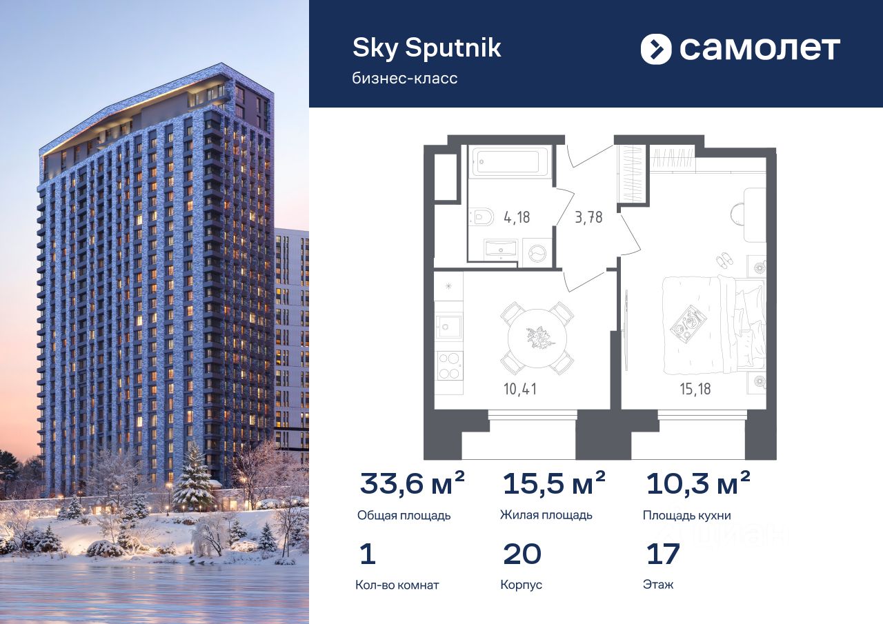 Строим кварталы для жизни с заботой о будущем. Предлагаются 1-комнатные апартаменты бизнес-класса 33,55 кв.м в корпусе 20 на 17 этаже, в Sky Sputnik Апартаменты без отделки. Доступность опции ''отделка'' и возможность комплектации мебелью и декором уточняйте у застройщика.