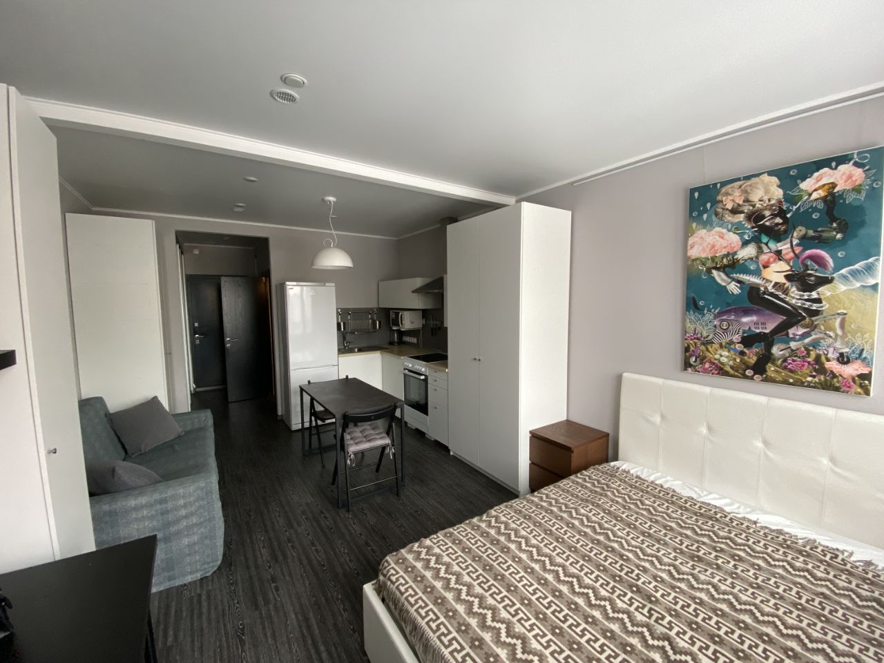 Чистая светлая студия с комфортными инженерными системами и большим количеством мест для хранения