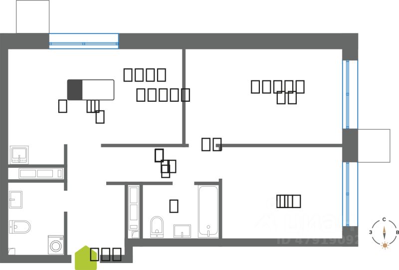 Продаётся 2-комнатная квартира в строящемся доме (Секция Нова), срок сдачи: II-кв. 2028, общей площадью 60.5 кв.м., на 16 этаже.