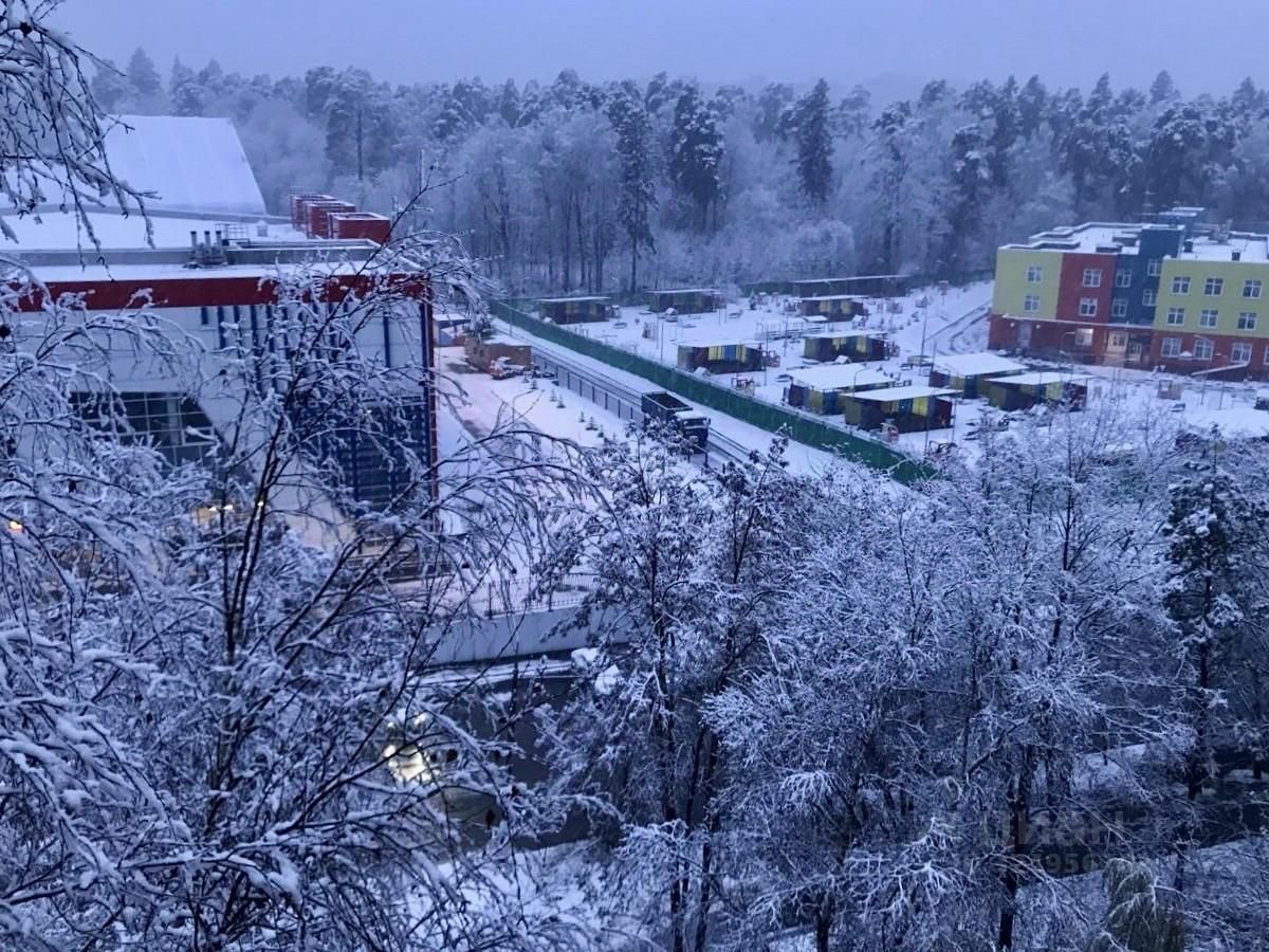 Вид из окон на Губайловский экопарк, в котором расположен детский сказочный городок, канатный парк и прочие детские развлечения.