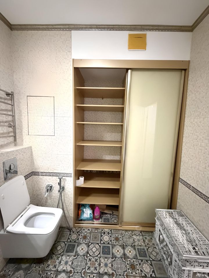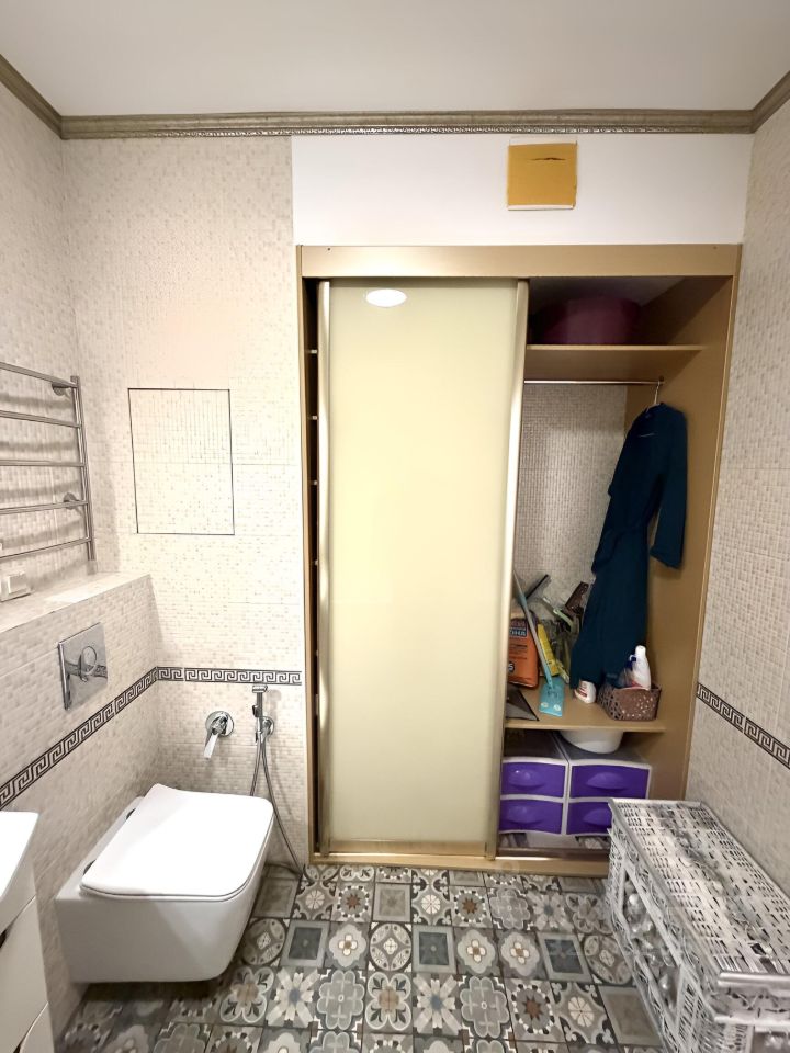 Много зон хранения, гардеробная, раскладной диван в кухне-гостиной.
