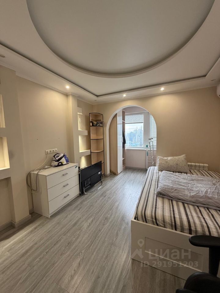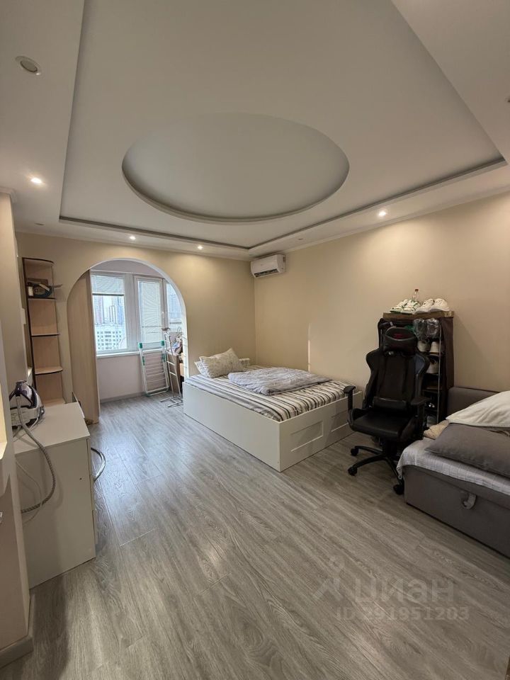 Сдается просторная евро-трешка (две изолированные комнаты + кухня-гостиная). В квартире выполнена удачная перепланирвка, хороший качественный ремонт: подвесные потолки (несколько сценариев освещения), ламинат, плитка с подогревом на кухне и в санузле. Современная сантехника в санузле и красивая современная кухня - компактная, но очень вместительная. Из мебели: диван в гостиной. диван на балконе (в кабинете), двуспальная кровать (в одной спальне), большой встроенный шкаф-купе, платяной шкаф и комод (в другой), 2 больших плоских телевизора. Большая гардеробная в прихожей, зеркальная дверь-купе. В каждой комнате кондиционеры (сплит-система). В квартире есть электрический камин, который создаёт дополнительный уют и красоту.