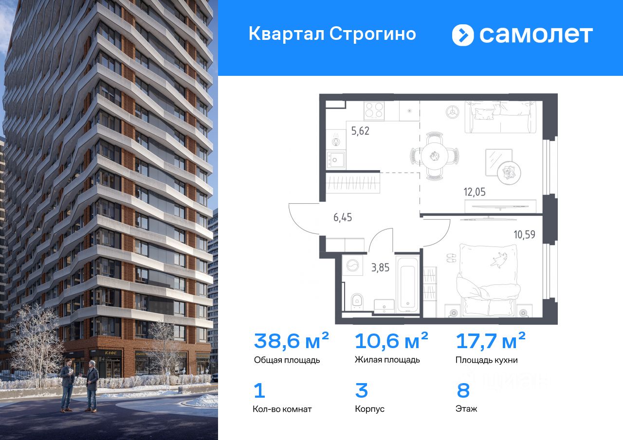 Строим кварталы для жизни с заботой о будущем. Предлагается 1-комнатная квартира комфорт-класса 38,56 кв.м в корпусе 3 на 8 этаже, в ЖК ''Квартал Строгино'' Квартира без отделки. Доступность опции ''отделка'' и возможность комплектации мебелью и декором уточняйте у застройщика.