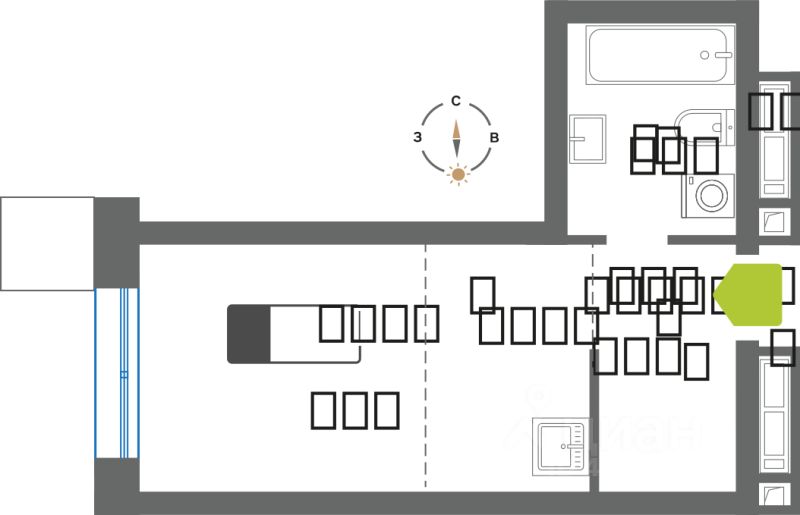 Продаётся студия в строящемся доме (Секция Нова), срок сдачи: II-кв. 2028, общей площадью 22.2 кв.м., на 20 этаже.