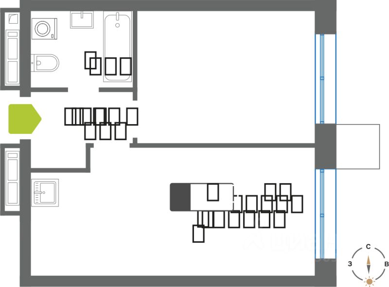 Продаётся 1-комнатная квартира в строящемся доме (Секция Нова), срок сдачи: II-кв. 2028, общей площадью 39.3 кв.м., на 25 этаже.