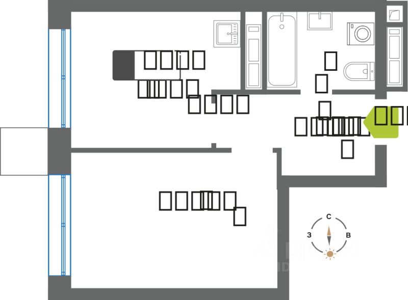 Продаётся 1-комнатная квартира в строящемся доме (Секция Нова), срок сдачи: II-кв. 2028, общей площадью 32.7 кв.м., на 29 этаже.