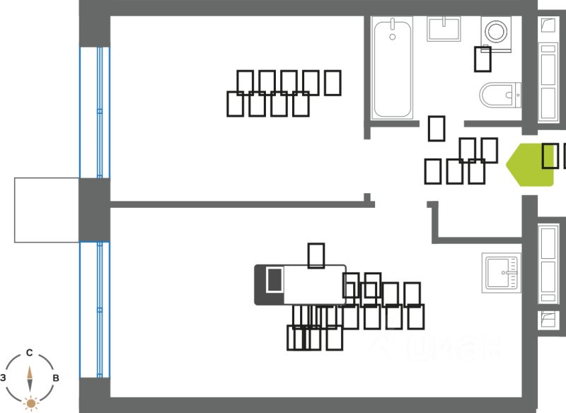 Продаётся 1-комнатная квартира в строящемся доме (Секция Нова), срок сдачи: II-кв. 2028, общей площадью 39.2 кв.м., на 22 этаже.