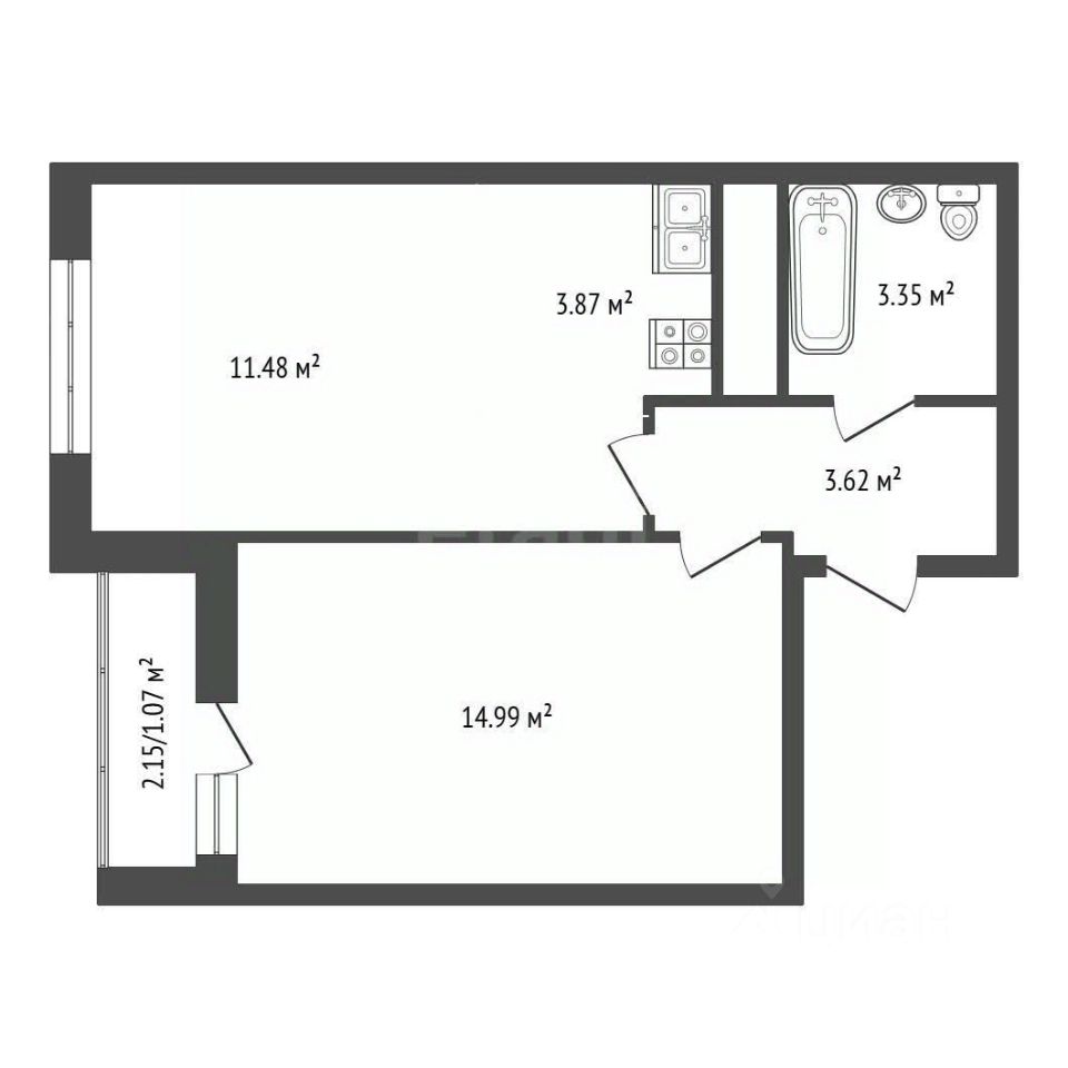 Расположена на 15-м этаже 23-этажного монолитного дома общей площадью - 37,3 м².