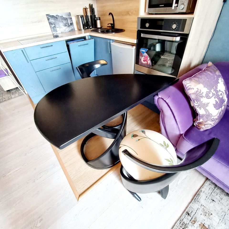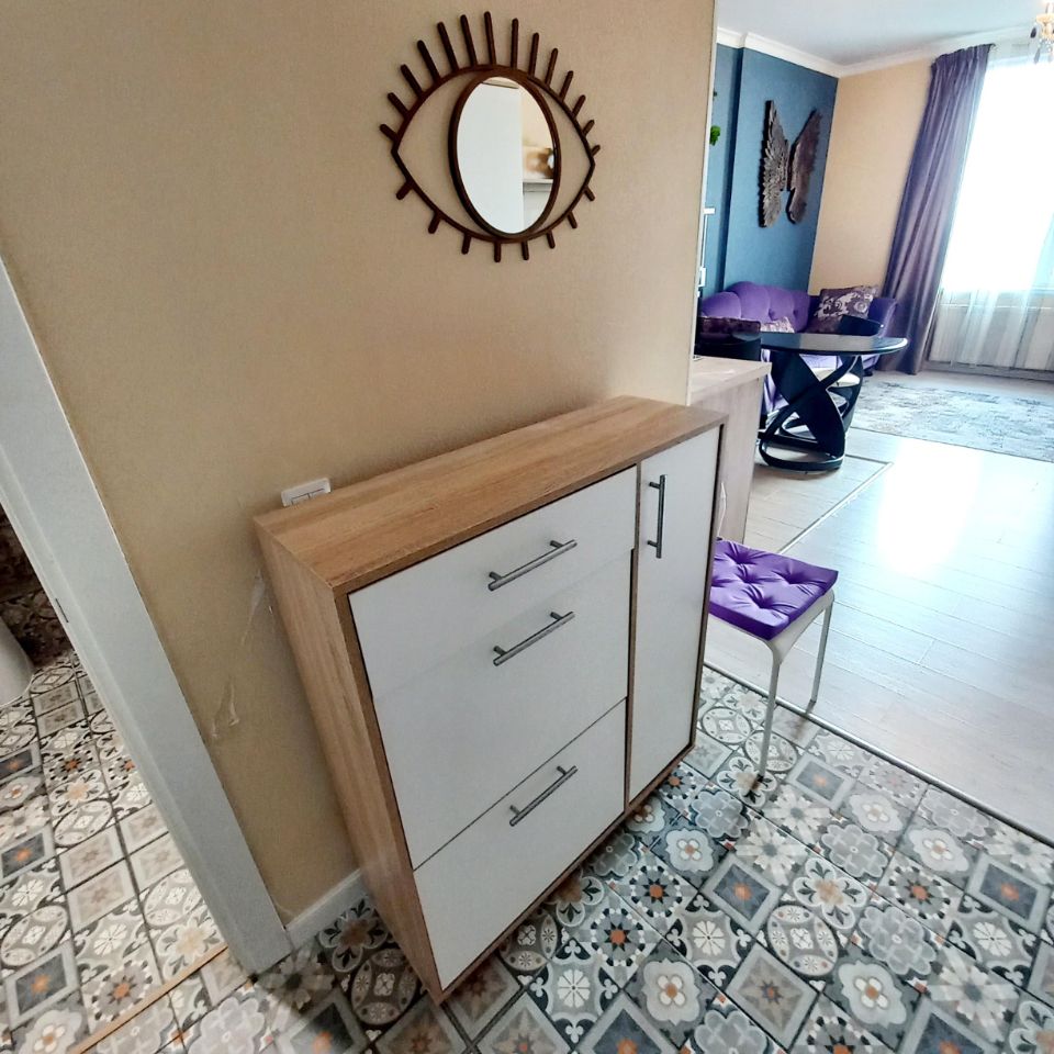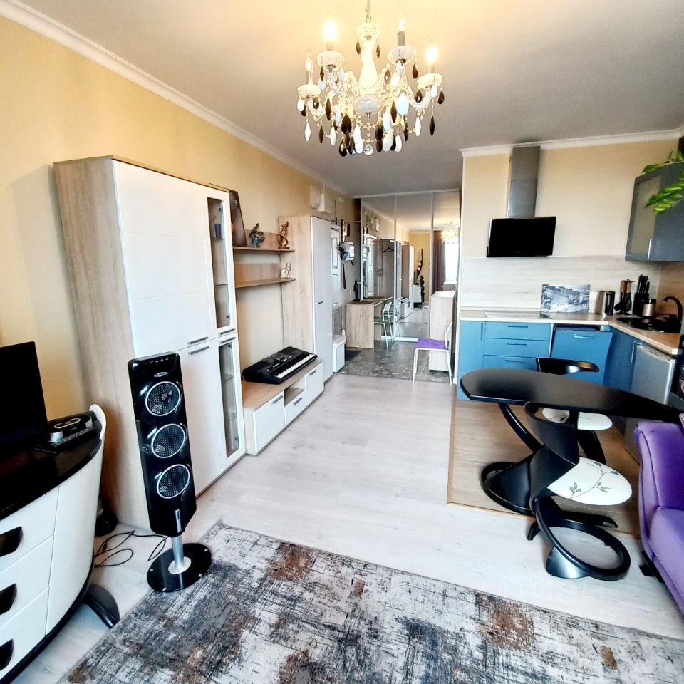 Квартира полностью готова к въезду и комфортному проживанию. В КУХНЕ-ГОСТИНОЙ: - кухонный гарнитур, - из техники: варочная панель, вытяжка, духовой шкаф, холодильник, микроволновая печь, посудомоечная машина, электро-чайник, - стильный стол, стулья, - большой шикарный раскладной диван, - тумба под ТВ, - телевизор, - стенка со шкафами, открытыми и закрытыми полками, - постеры, предметы декора, стильная люстра, красивые хорошо подобранные шторы - всё это создаёт уют и неповторимую домашнюю атмосферу.