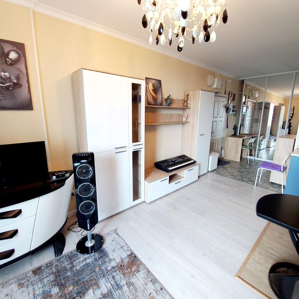 Студия просторная - общая площадь 33 м2, кухня-гостиная 25 м2, вид из окна на рощу, просторный совмещенный санузел, большая прихожая с вместительным зеркальным шкафом.