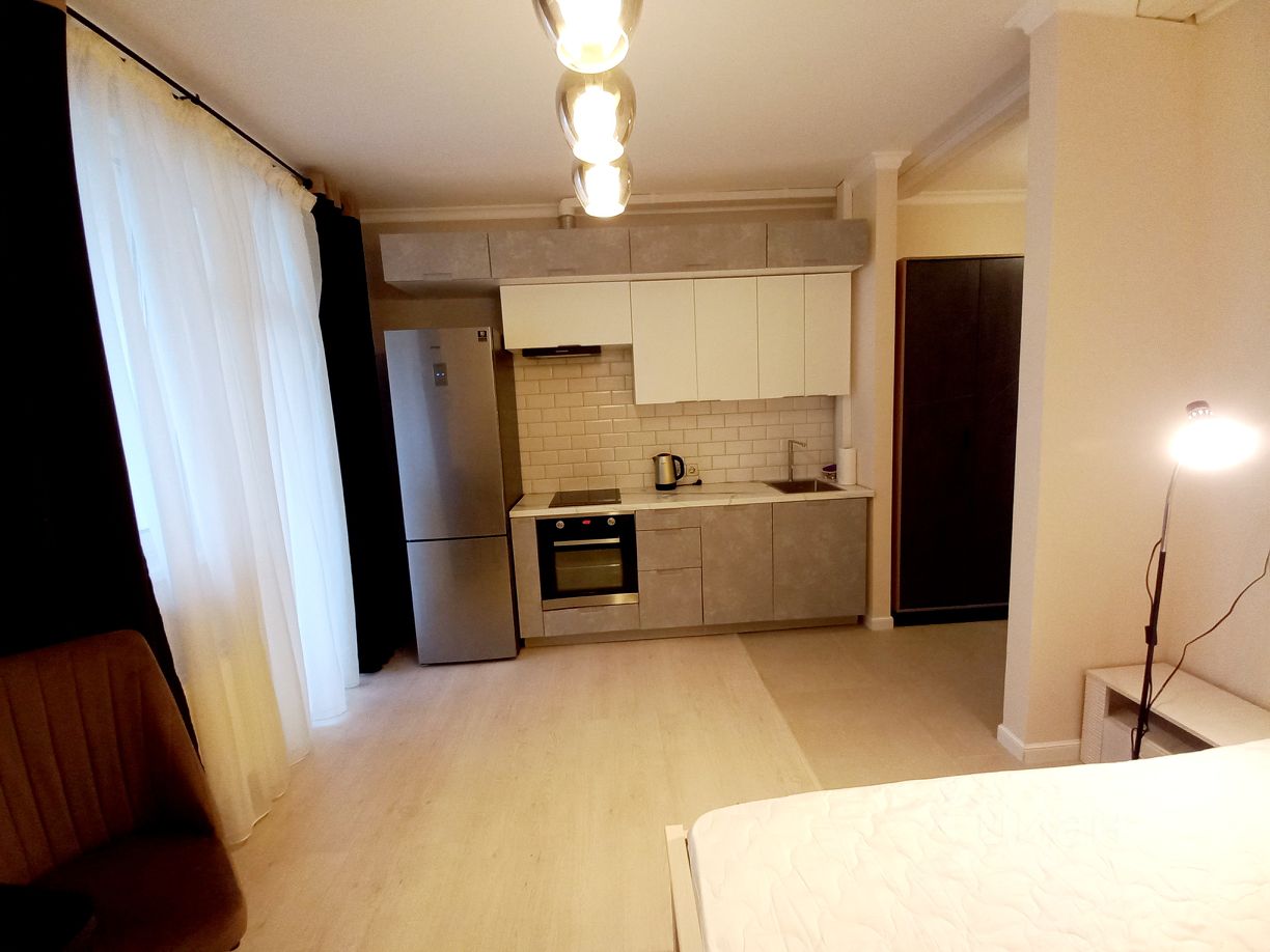 Общая площадь 29,7 м2, комната 19 м2, большая лоджия с панорамными окнами (окна на двор и парк), с/у совмещенный. Потолки 2,90 м.