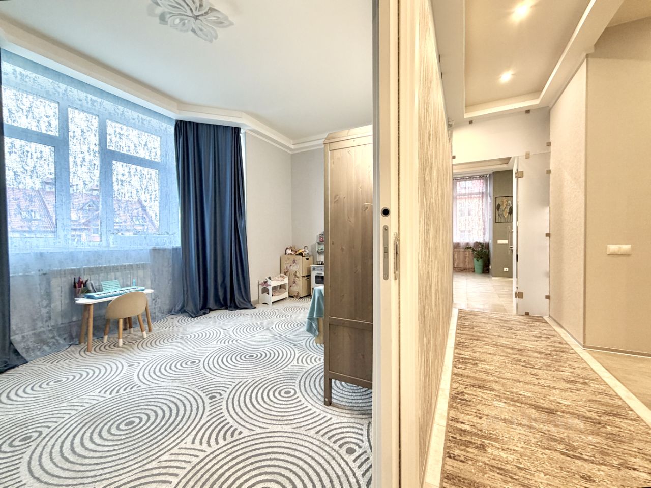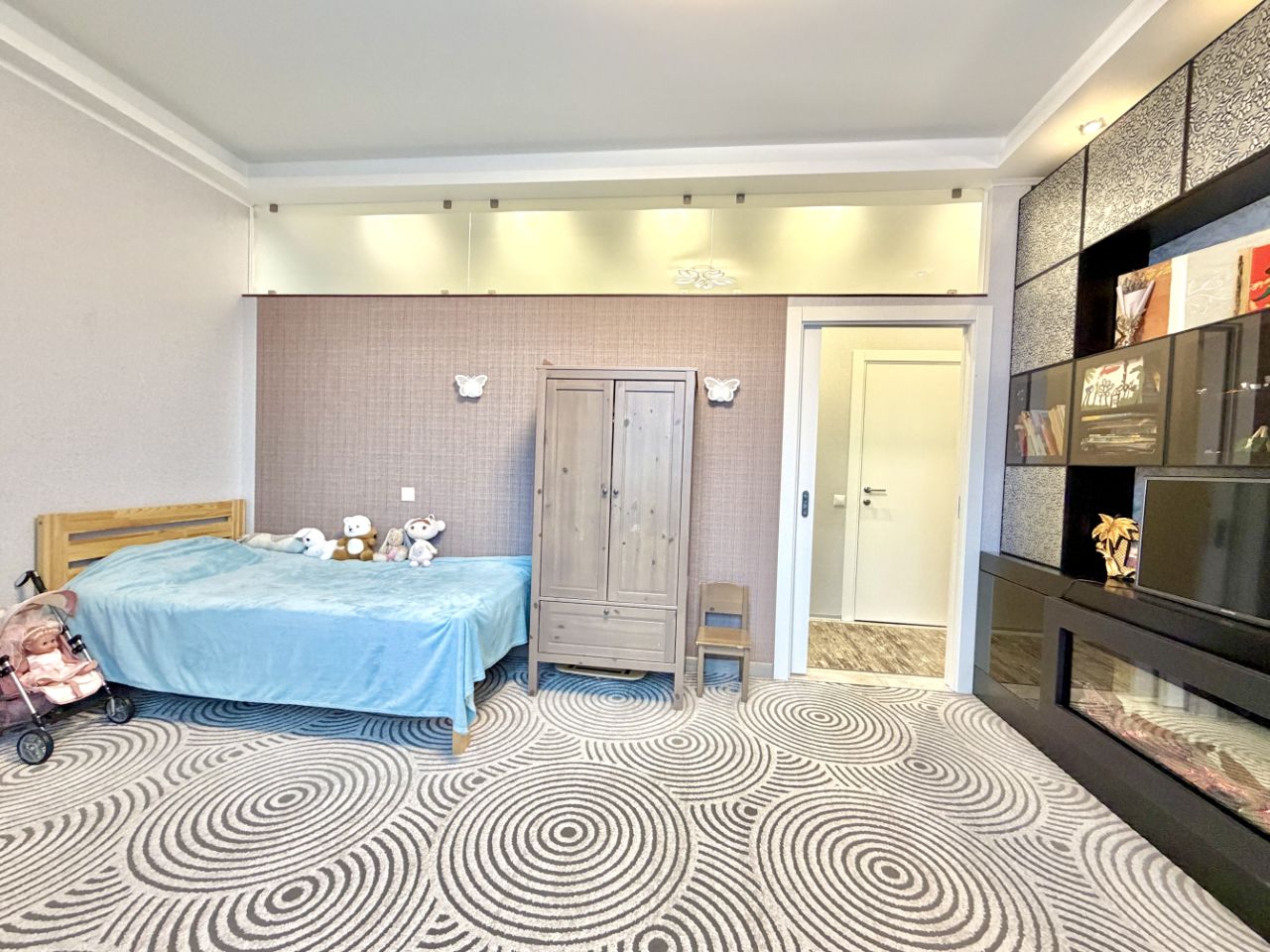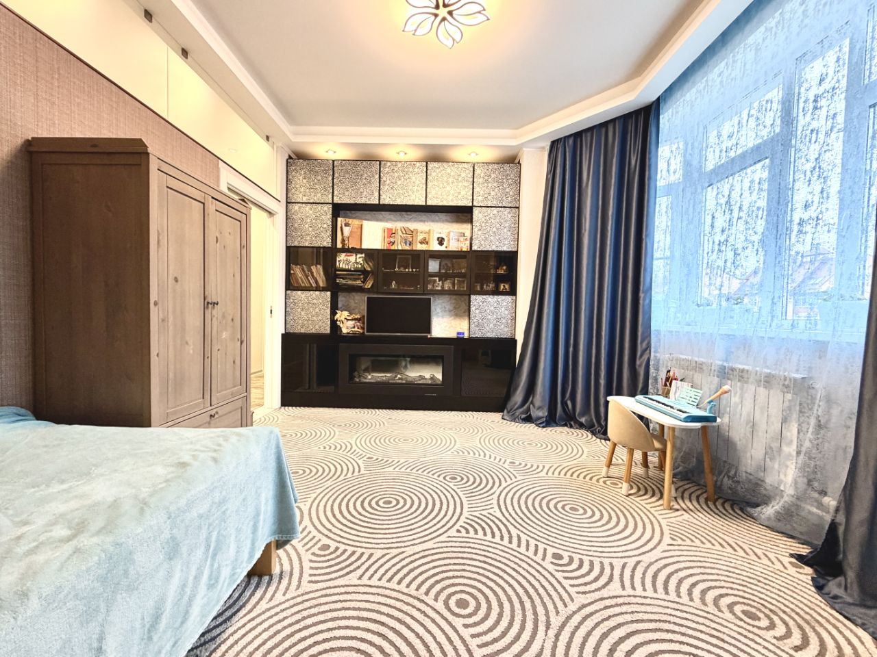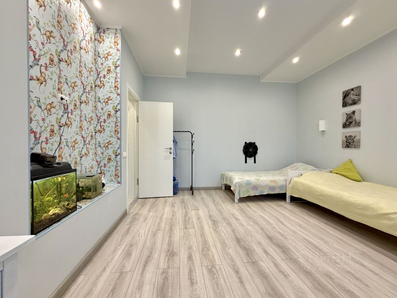 Продается четырехкомнатная, не требующая вложений, квартира общей площадью 108,6 кв. метров на 5 этаже 6 этажного дома. Функциональная планировка. Полностью укомплектованная мебелью и техникой кухня-гостиная с зонами кухни 12,3 кв.метров, обеденной и отдыха 19,9 кв.метров. Три отдельные комнаты: две детские 18,9 кв.метров и 15 кв.метров с установленным камином. Спальня 14,2 кв.метров с гардеробной. Постирочная, два санузла. В квартире выполнен дизайнерский ремонт с использованием качественных европейских материалов. Перепланировка узаконена, есть схема разводки электрики. В кухне-гостиной, прихожей, спальне и санузлах теплые полы, установлен водонагреватель. Комнаты оборудованы кондиционерами Mitsubishi.