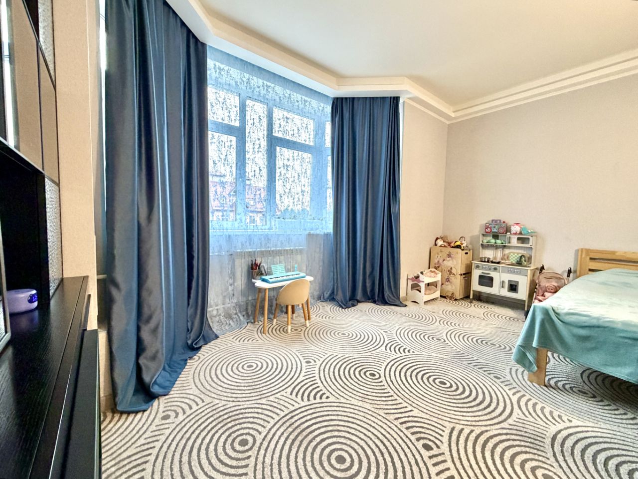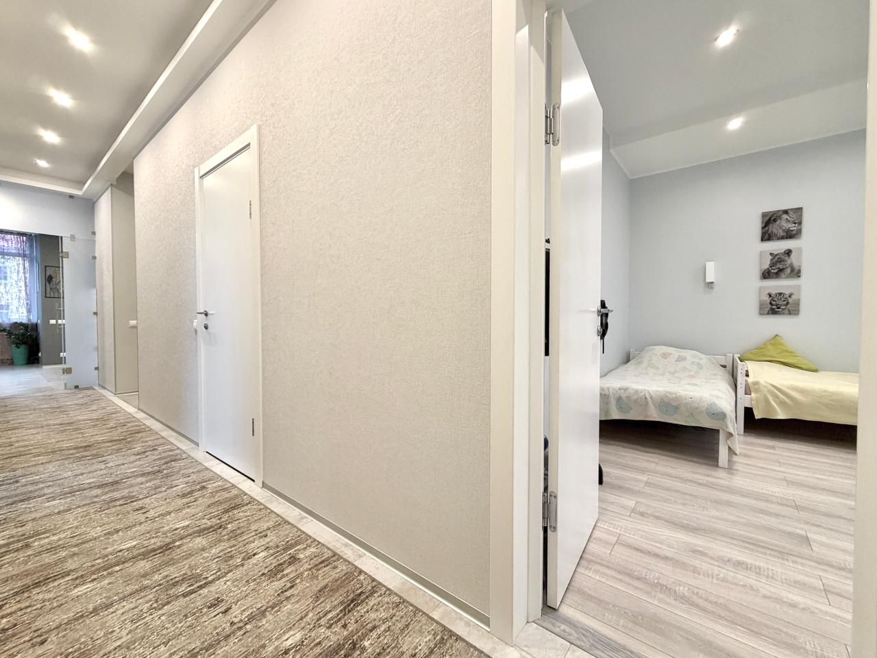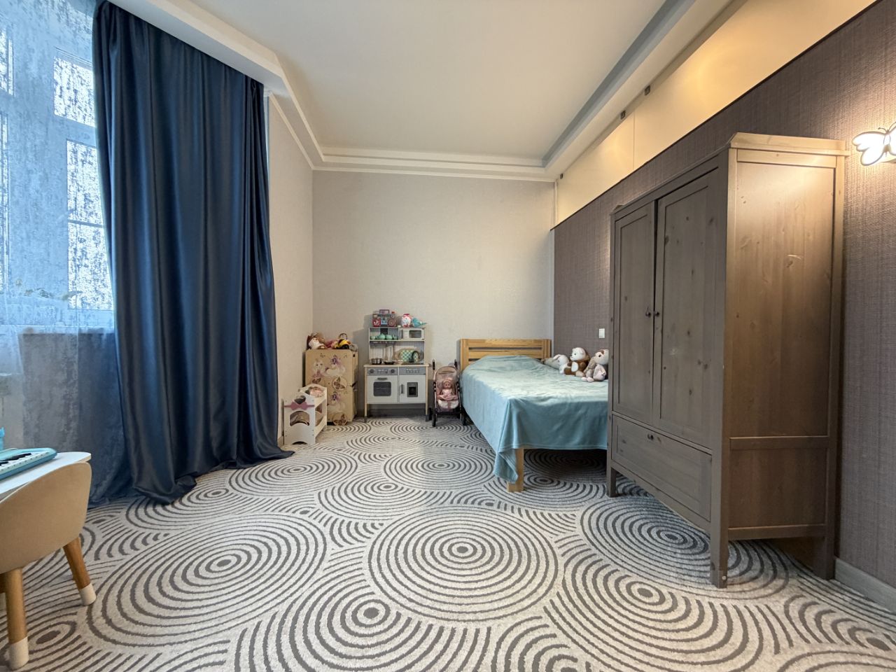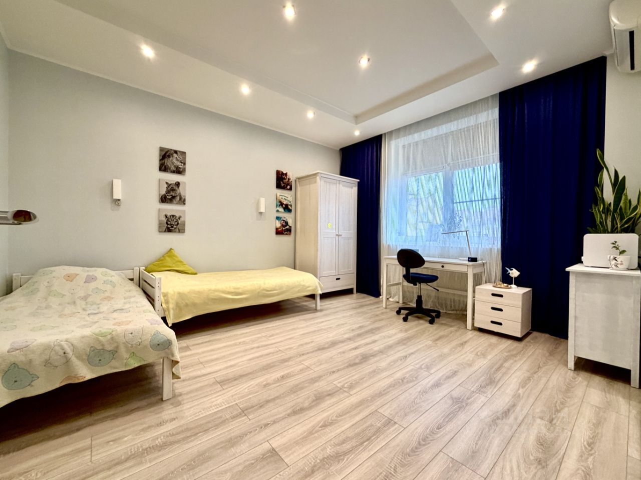 Продается четырехкомнатная, не требующая вложений, квартира общей площадью 108,6 кв. метров на 5 этаже 6 этажного дома. Функциональная планировка. Полностью укомплектованная мебелью и техникой кухня-гостиная с зонами кухни 12,3 кв.метров, обеденной и отдыха 19,9 кв.метров. Три отдельные комнаты: две детские 18,9 кв.метров и 15 кв.метров с установленным камином. Спальня 14,2 кв.метров с гардеробной. Постирочная, два санузла. В квартире выполнен дизайнерский ремонт с использованием качественных европейских материалов. Перепланировка узаконена, есть схема разводки электрики. В кухне-гостиной, прихожей, спальне и санузлах теплые полы, установлен водонагреватель. Комнаты оборудованы кондиционерами Mitsubishi.