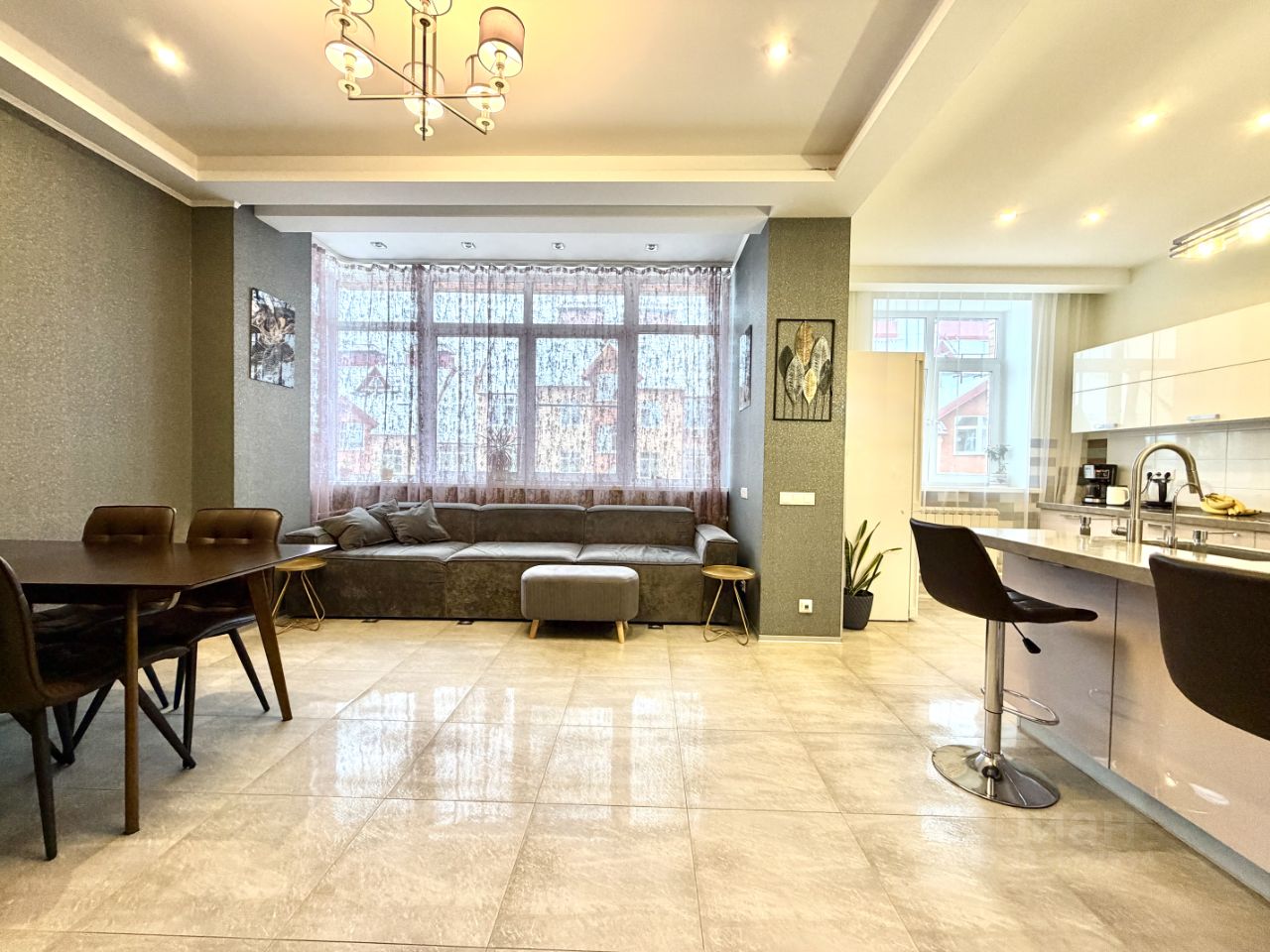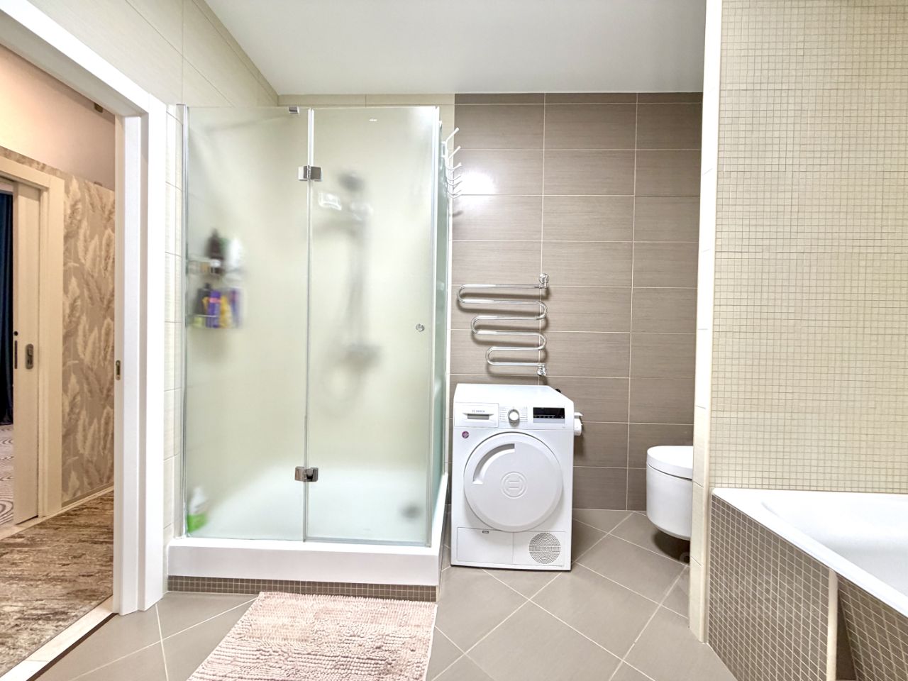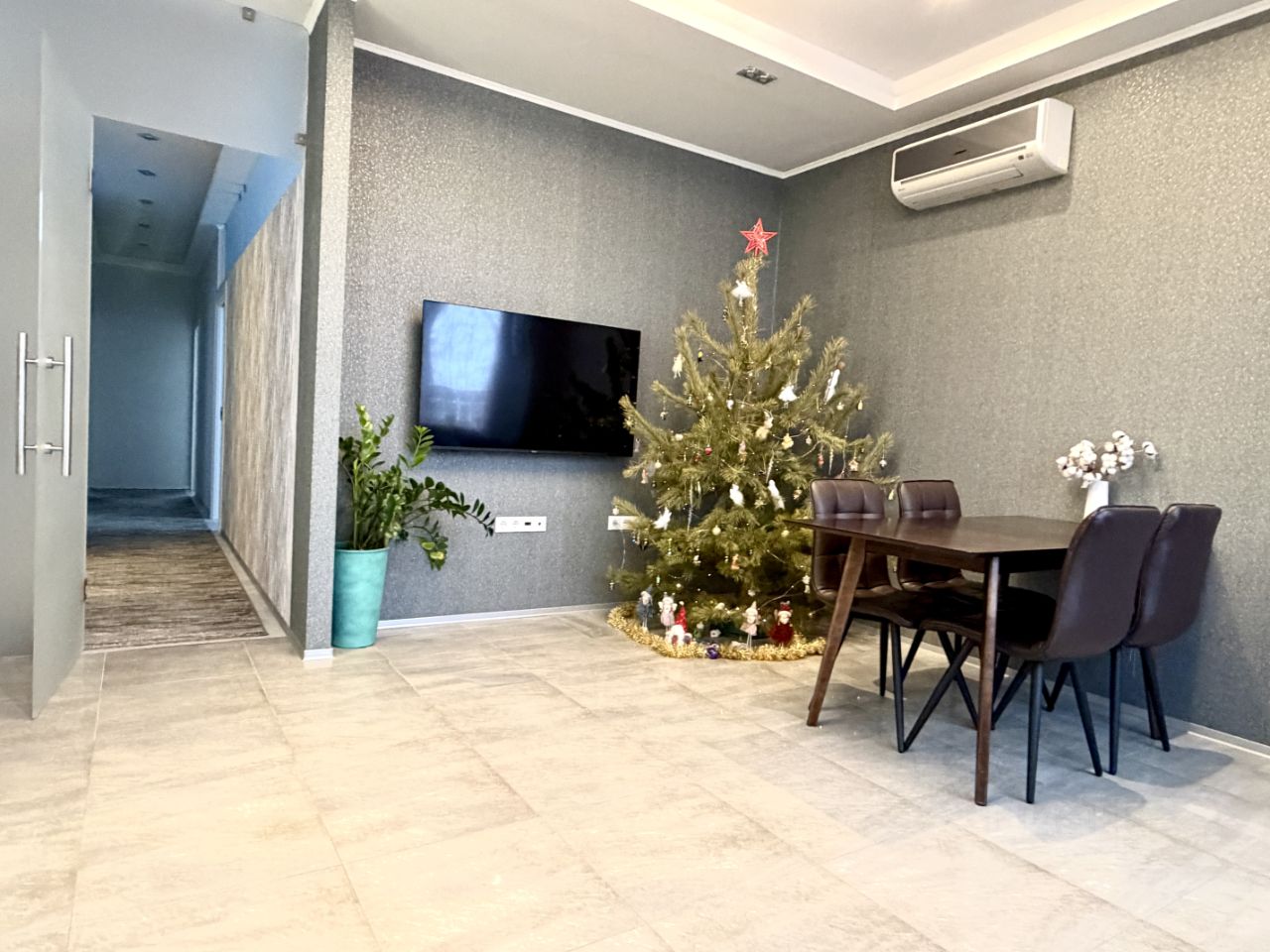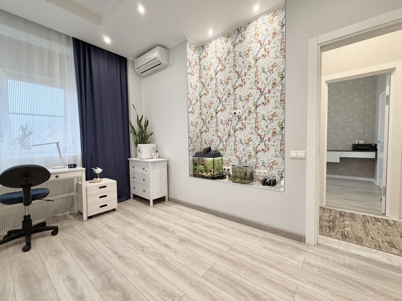 Продается четырехкомнатная, не требующая вложений, квартира общей площадью 108,6 кв. метров на 5 этаже 6 этажного дома. Функциональная планировка. Полностью укомплектованная мебелью и техникой кухня-гостиная с зонами кухни 12,3 кв.метров, обеденной и отдыха 19,9 кв.метров. Три отдельные комнаты: две детские 18,9 кв.метров и 15 кв.метров с установленным камином. Спальня 14,2 кв.метров с гардеробной. Постирочная, два санузла. В квартире выполнен дизайнерский ремонт с использованием качественных европейских материалов. Перепланировка узаконена, есть схема разводки электрики. В кухне-гостиной, прихожей, спальне и санузлах теплые полы, установлен водонагреватель. Комнаты оборудованы кондиционерами Mitsubishi.