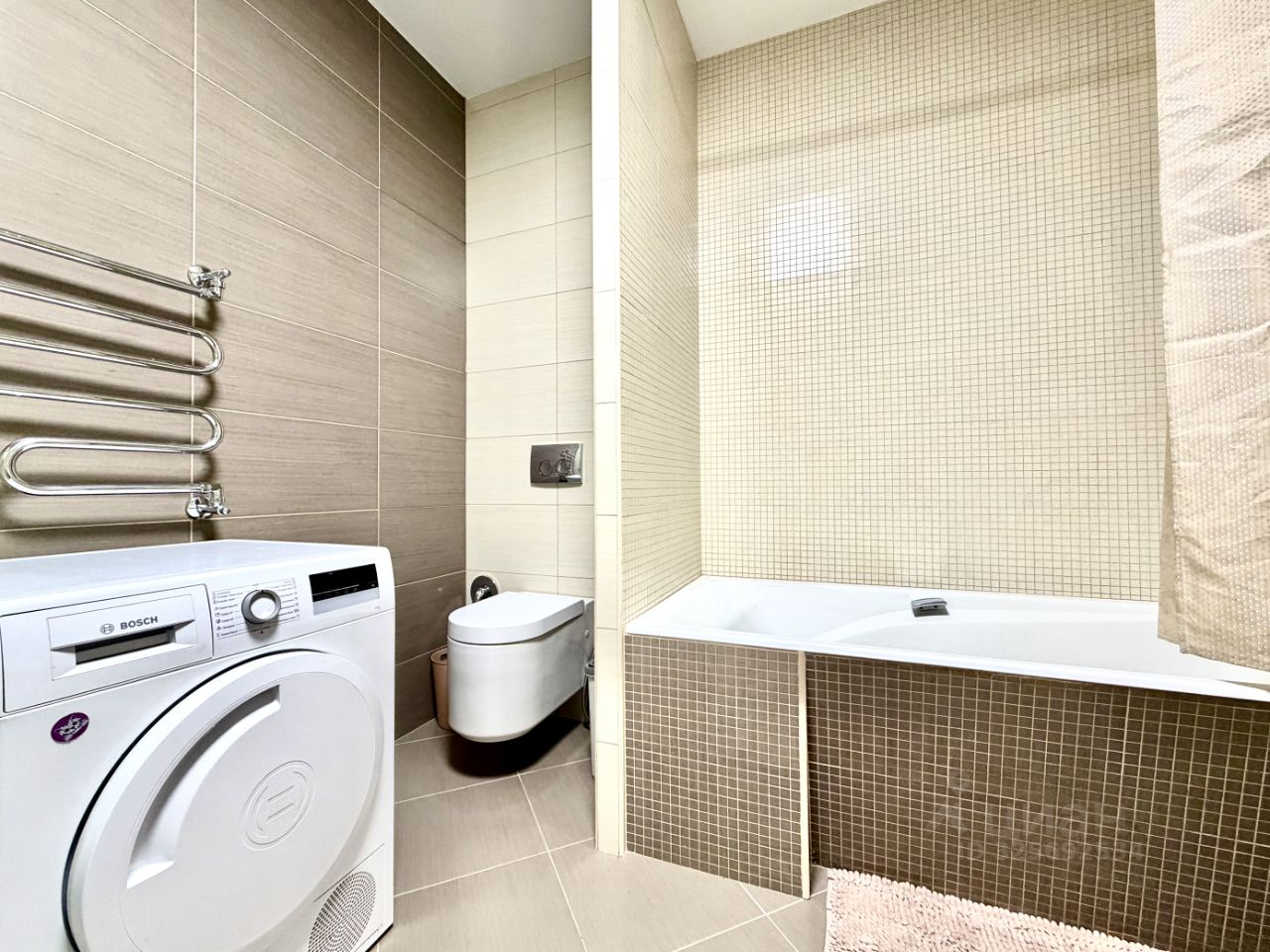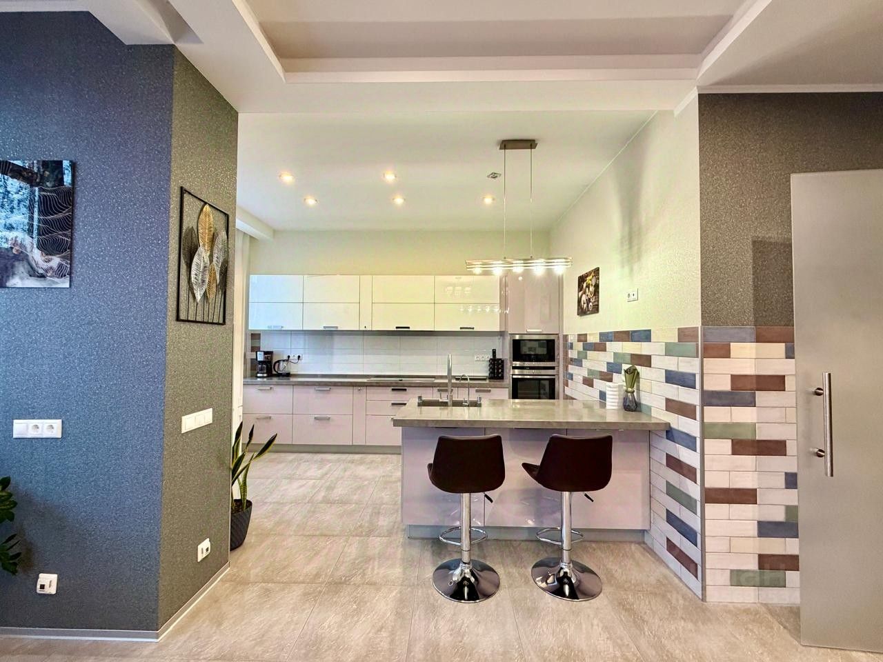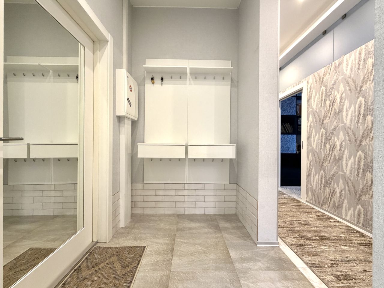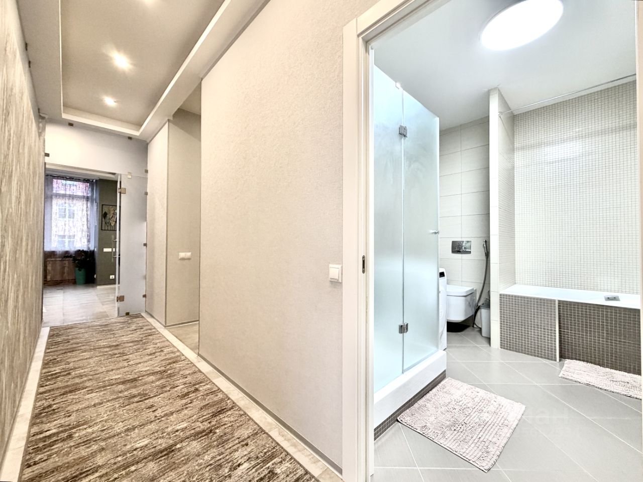 Продается четырехкомнатная, не требующая вложений, квартира общей площадью 108,6 кв. метров на 5 этаже 6 этажного дома. Функциональная планировка. Полностью укомплектованная мебелью и техникой кухня-гостиная с зонами кухни 12,3 кв.метров, обеденной и отдыха 19,9 кв.метров. Три отдельные комнаты: две детские 18,9 кв.метров и 15 кв.метров с установленным камином. Спальня 14,2 кв.метров с гардеробной. Постирочная, два санузла. В квартире выполнен дизайнерский ремонт с использованием качественных европейских материалов. Перепланировка узаконена, есть схема разводки электрики. В кухне-гостиной, прихожей, спальне и санузлах теплые полы, установлен водонагреватель. Комнаты оборудованы кондиционерами Mitsubishi.