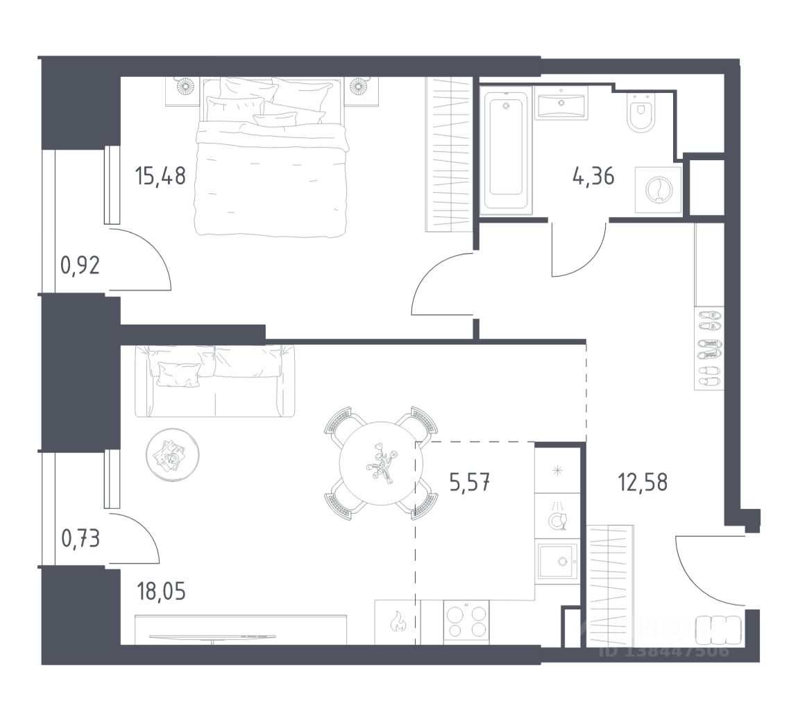 Строим кварталы для жизни с заботой о будущем. Предлагаются 1-комнатные апартаменты бизнес-класса площадью 57,69 кв.м в корпусе 19 на 4-м этаже, в жилом комплексе ''Sky Sputnik''.