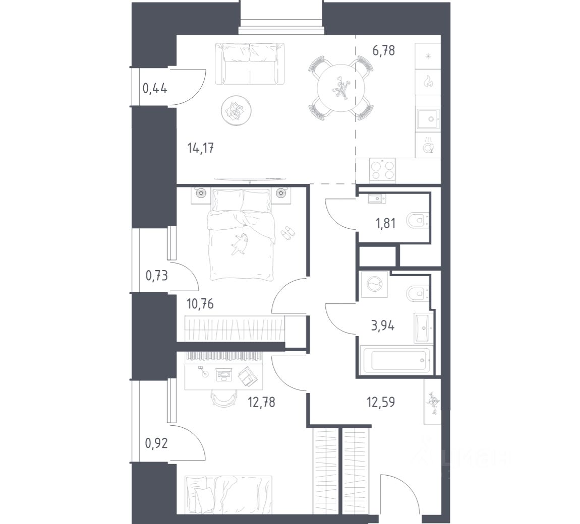 Строим кварталы для жизни с заботой о будущем. Предлагаются 2-комнатная квартира бизнес-класса площадью 64,92 кв.м в корпусе 19 на 6-м этаже, в жилом комплексе ''Скай Спутник''.