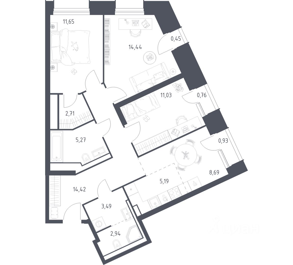 Цена динамическая и может отличаться, уточняйте актуальность у застройщика.