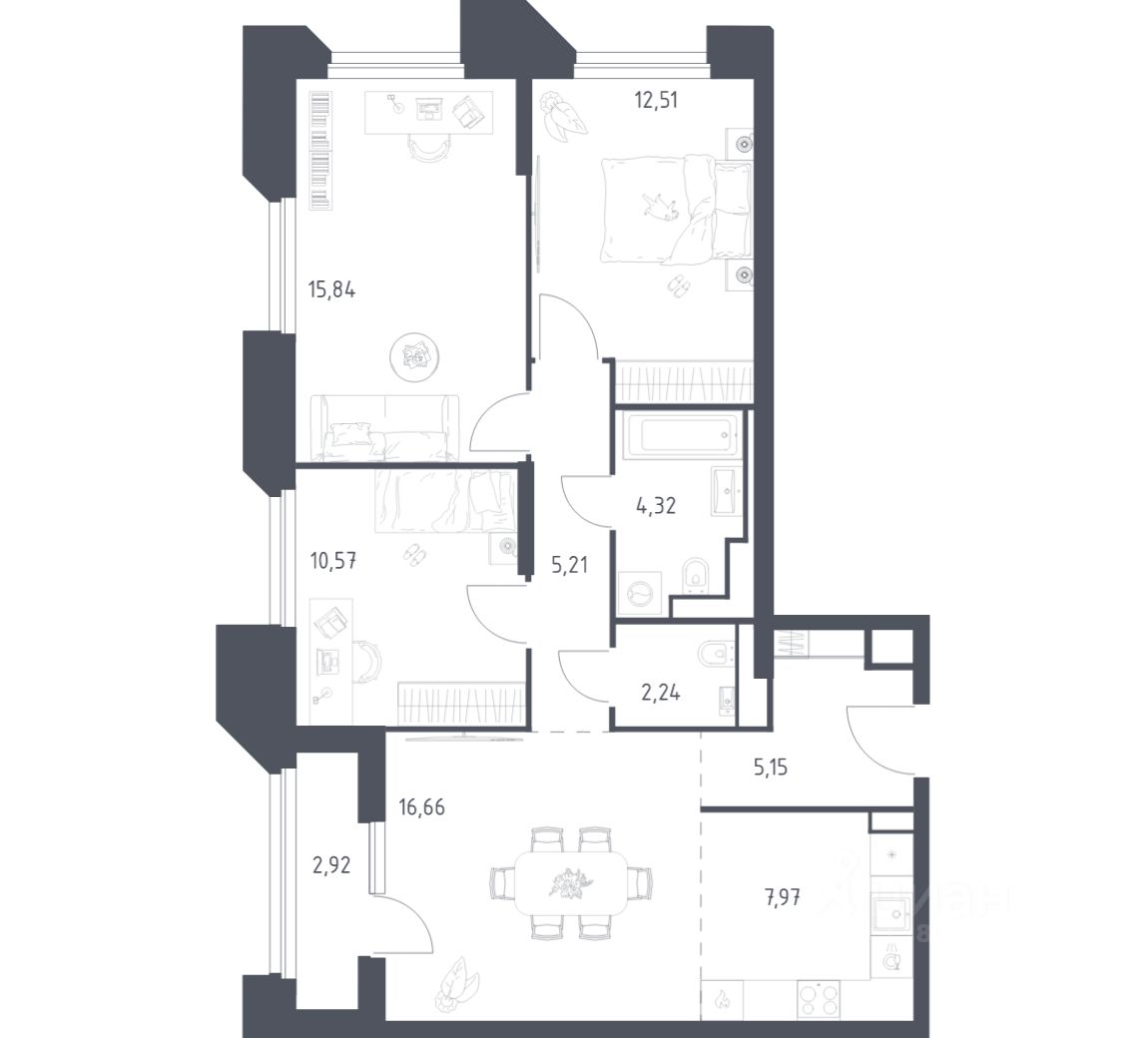 Строим кварталы для жизни с заботой о будущем. Предлагаются 3-комнатные апартаменты бизнес-класса площадью 83,39 кв.м в корпусе 21 на 9-м этаже, в жилом комплексе ''Sky Sputnik''.