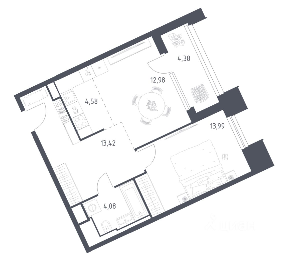 Строим кварталы для жизни с заботой о будущем. Предлагаются 1-комнатные апартаменты бизнес-класса площадью 53,43 кв.м в корпусе 19 на 17-м этаже, в жилом комплексе ''Sky Sputnik''.
