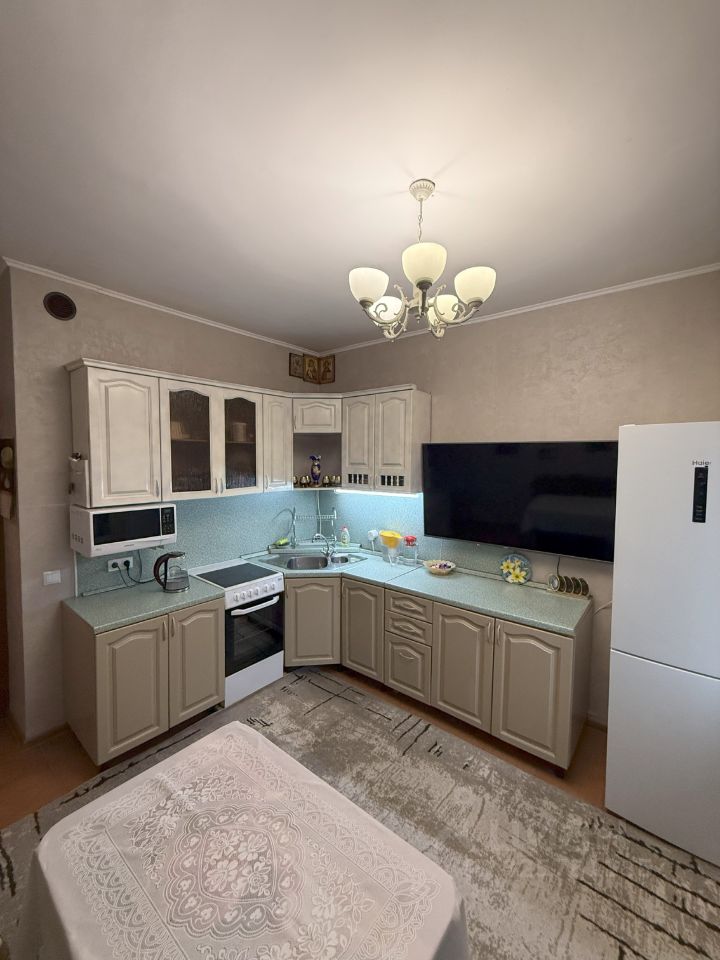 Квартира укомплектована всем необходимым. В комнате новый раскладывающийся диван и два кресла, двуспальная кровать, тумба, телевизор, комод и полки. На кухне холодильник, варочная панель и духовой шкаф, вытяжка, СВЧ-печь, телевизор, кухонная мебель. В ванной комнате есть стиральная машина и большой бойлер.