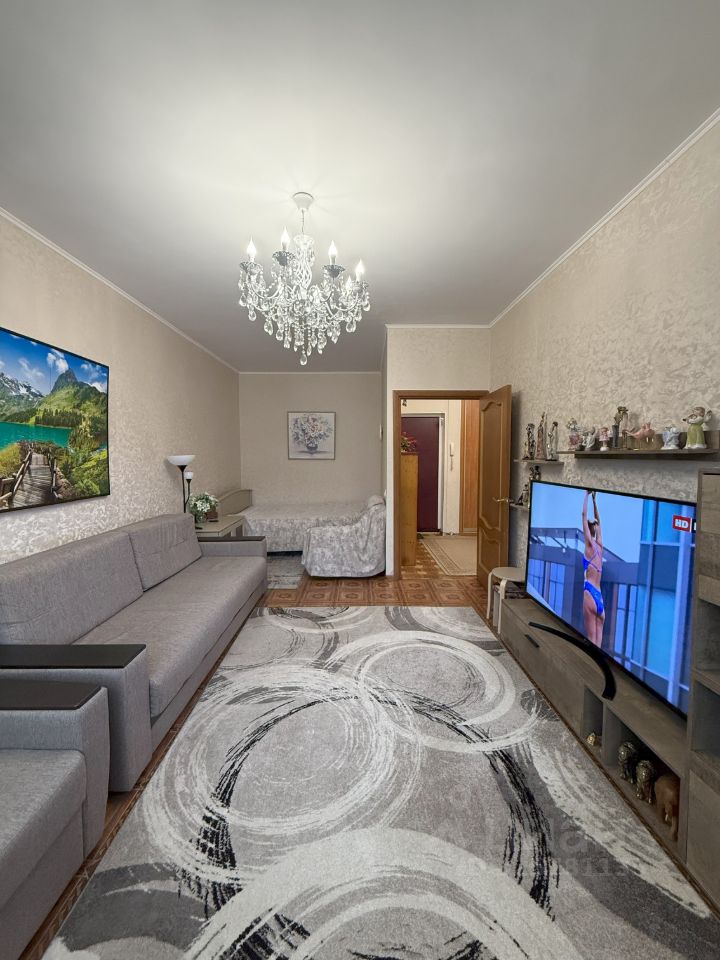 Квартира укомплектована всем необходимым. В комнате новый раскладывающийся диван и два кресла, двуспальная кровать, тумба, телевизор, комод и полки. На кухне холодильник, варочная панель и духовой шкаф, вытяжка, СВЧ-печь, телевизор, кухонная мебель. В ванной комнате есть стиральная машина и большой бойлер. В прихожей установлен встроенный шкаф-купе, гардеробная мебель. На лоджии два шкафа для хранения вещей.
