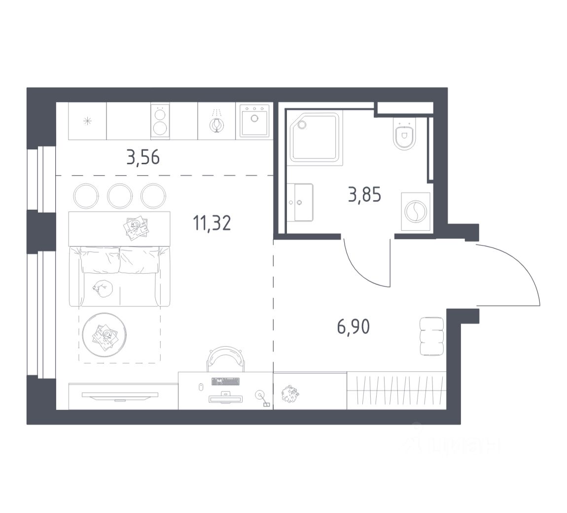 Строим кварталы для жизни с заботой о будущем. Предлагается студия комфорт-класса площадью 25,63 кв.м в корпусе 2 на 19-м этаже, в жилом комплексе ''Квартал Строгино''.