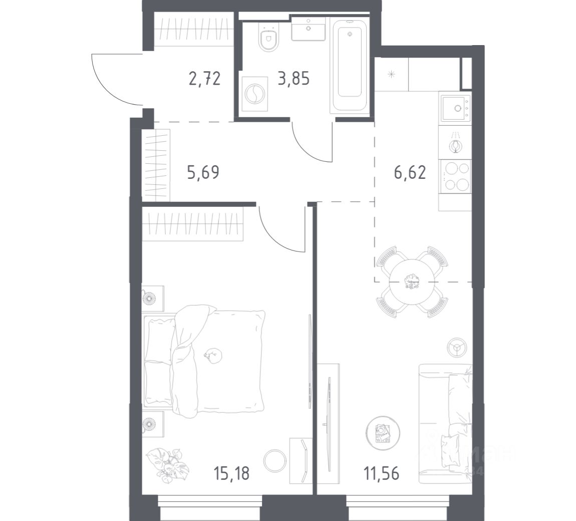 В варианте без отделки мы установили окна и входную дверь, завели в квартиру коммуникации. Получайте ключи и начните создавать интерьер мечты в новой квартире. В варианте с предчистовой отделкой мы развели коммуникации по помещениям, выровняли и зашпаклевали стены, подготовили пол к чистовому покрытию. Ваша будущая квартира готова к финишному ремонту. Осталось выбрать, какие оттенки будут в вашем интерьере и воплотить дизайнерские идеи. В варианте с готовой отделкой мы поклеили обои под покраску, постелили полы в комнатах и санузлах, выполнили отделку стен. Установили сантехнику и межкомнатные двери, провели электрику. Это лучшее соотношение цены, качества и затраченного времени. Осталось только выбрать место для обеденного стола и удобного дивана.