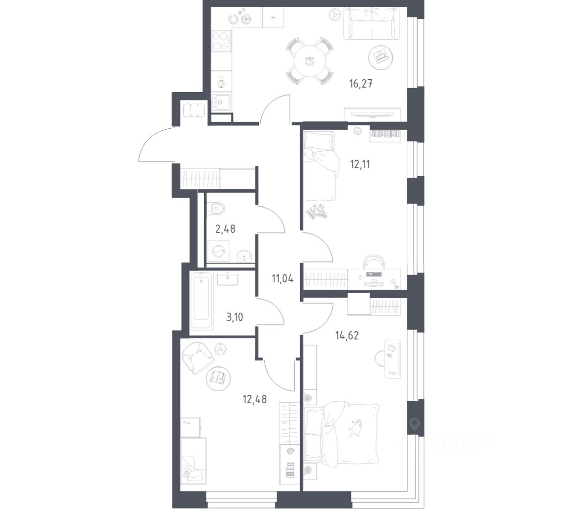 Строим кварталы для жизни с заботой о будущем. Предлагается 3-комнатная квартира комфорт-класса площадью 72,1 кв.м в корпусе 2 на 17-м этаже, в жилом комплексе ''Квартал Строгино''.
