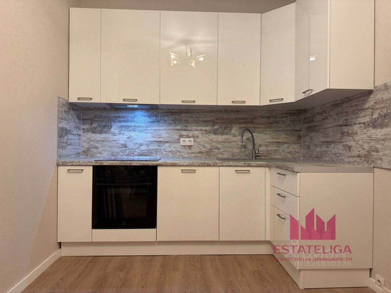 КУХНЯ-ГОСТИНАЯ: - вместительный кухонный гарнитур, где без проблем разместятся все кухонные принадлежности, - из техники - 4-х конфорочная варочная панель, духовой шкаф, холодильник, - стол, стулья.