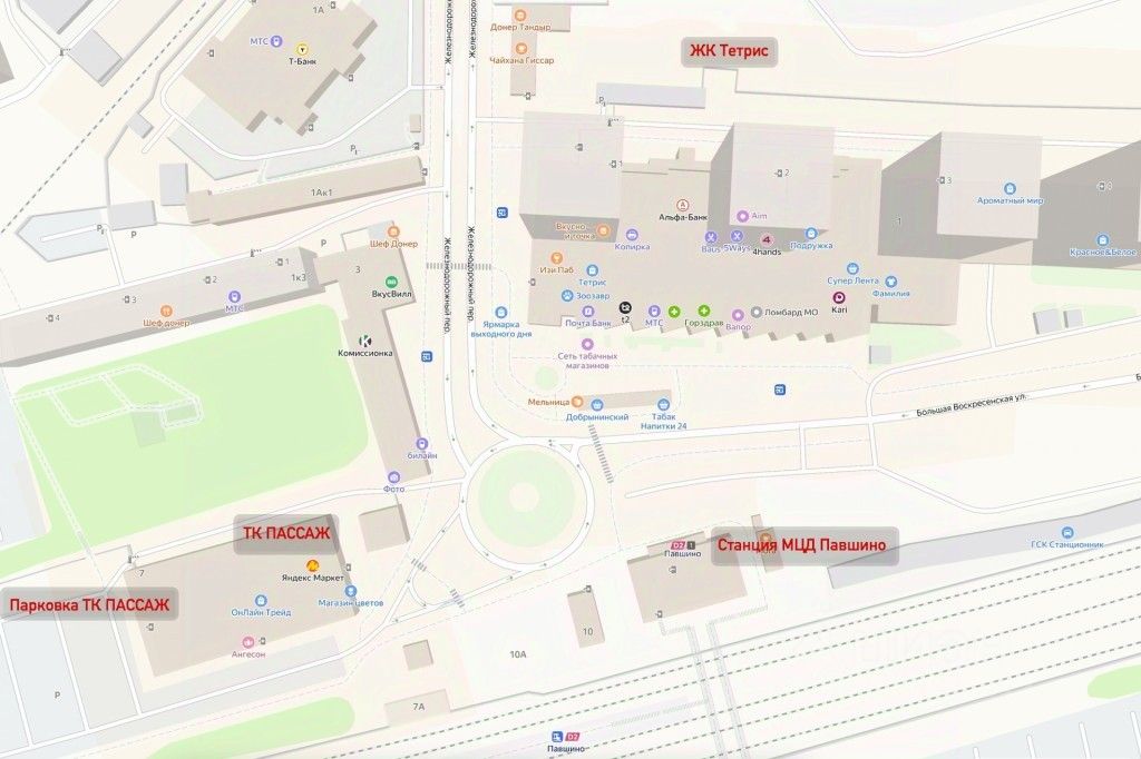 Торговый комплекс расположен на станции МЦД ''Павшино'', что обеспечивает хорошую проходимость. Сейчас помещение сдается в аренду, возможно купить вместе с арендатором. Торговый центр состоит из 3 этажей, общей площадью 5400,8 метров, доступ в здание осуществляется с пяти входов, график работы с 9:00 до 21:00. Паковка на 120 мест. Год постройки - 2004 год.