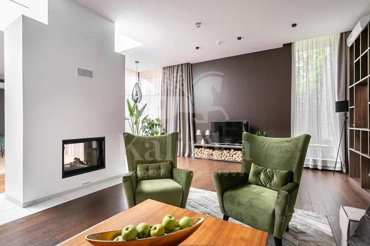 Предлагается стильный таунхаус площадью 360 кв.м. на участке 6 соток в элитном охраняемом поселке ''Резиденция Рублево''. Таунхаус меблирован, укомплектован всей необходимой техникой и полностью готов к проживанию. Интерьеры выдержаны в едином стиле. Просторные помещения, высокие потолки, большое количество остекления. Террасы и живописные виды на парк. В планировке предусмотрено 4 спальни с санузлами и гардеробными, кабинет (можно использовать как гостевую спальню), большое количество террас и балконов, гостиная с камином и ТВ-зоной, кухня, столовая, патио с зоной отдыха и барбекю. Вход в котельную организован с улицы, ее можно использовать для хранения садовой техники. Под всей площадью дома есть подвал с высотой потолков 1,6 м.