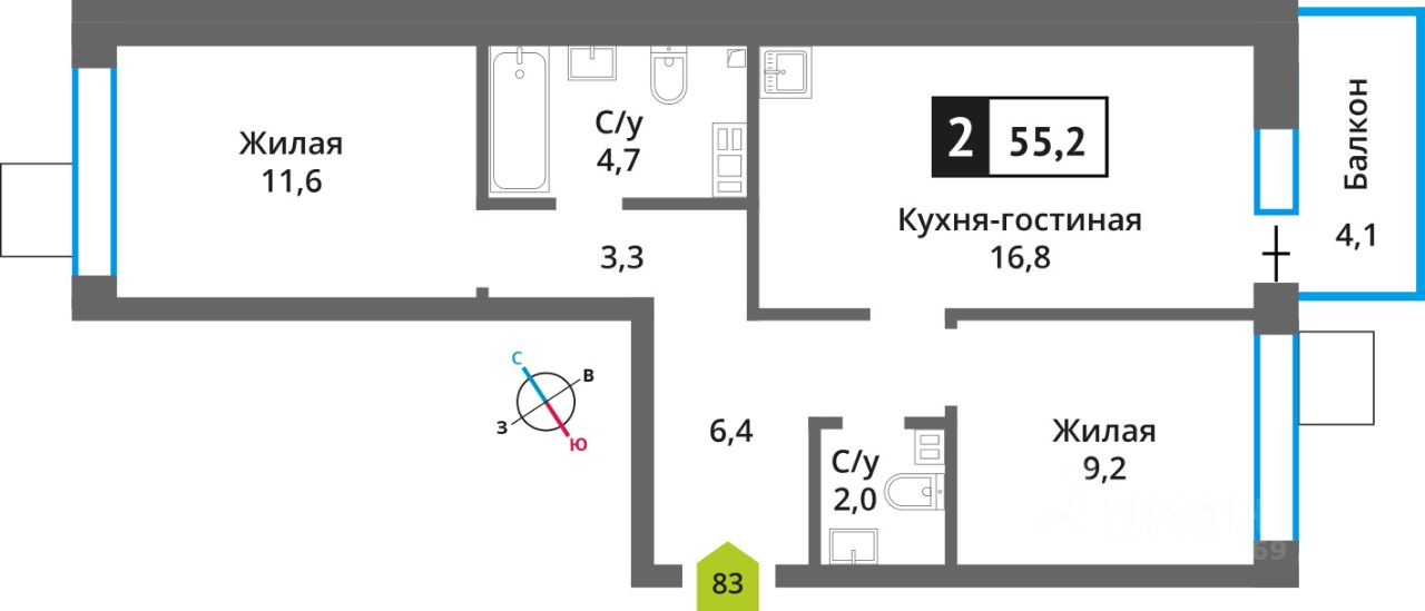 Продается полноценная двух комнатная квартира , с двумя отдельными спальнями общей площадью 55,2 кв. м расположенная на 8-ом этаже с прекрасными видовыми характеристиками, квартира имеет две отдельных спальни 11,6/9,2 кв. м кухня гостиная 16,8 кв. м и просторный балкон. Квартира без ремонта. Право собственности на основании ДДУ 1 собственник, мат капитал не использован при покупке , срок сдачи дома 2025 год. Быстрый выход на сделку по ДКП. Никольский квартал Отрада новый жилой комплекс в Красногорске, в микрорайоне Опалиха. Квартал расположен в удачной локации, которая сочетает благоприятную экологическую обстановку с прекрасной транспортной доступностью. До МЦД ''Опалиха'' и ''Аникеевка'' можно будет добраться на автомобиле всего за 4-5 минут.