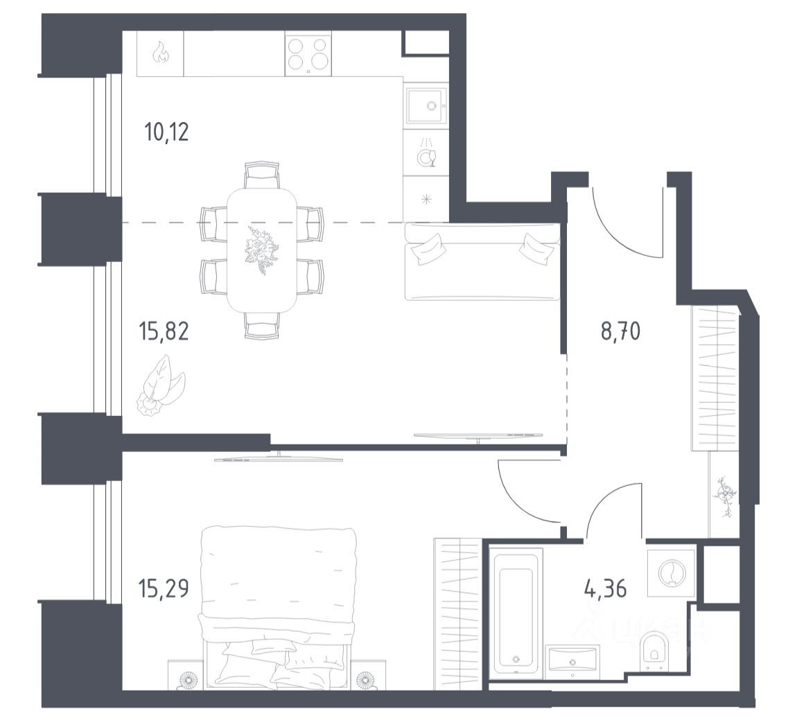 Строим кварталы для жизни с заботой о будущем. Предлагаются 1-комнатные апартаменты бизнес-класса площадью 54,29 кв.м в корпусе 19 на 7-м этаже, в жилом комплексе ''Sky Sputnik''.