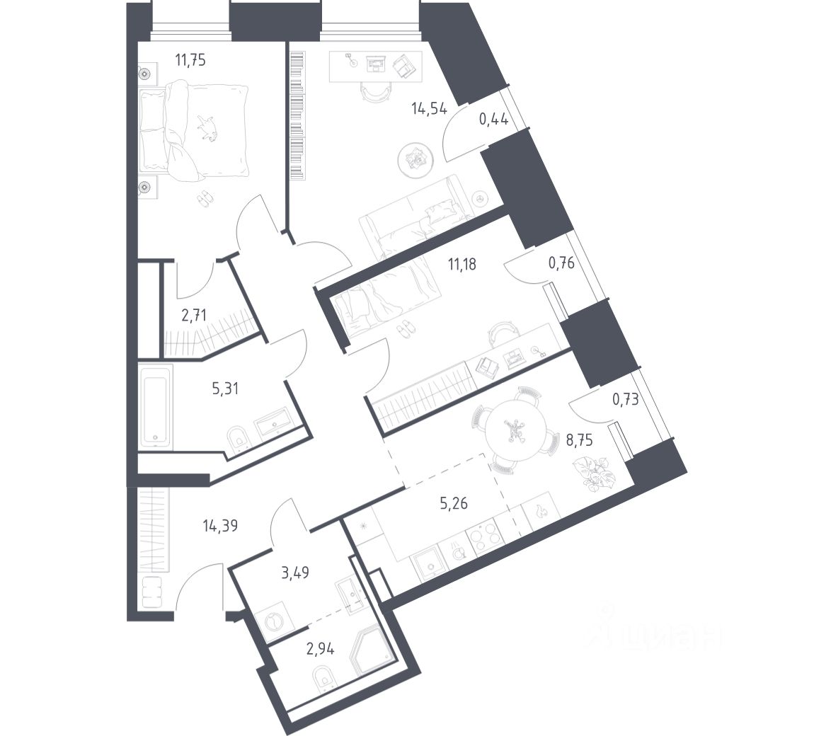 продам 3-к, Спутник ЖК, 1926 462 128 ₽