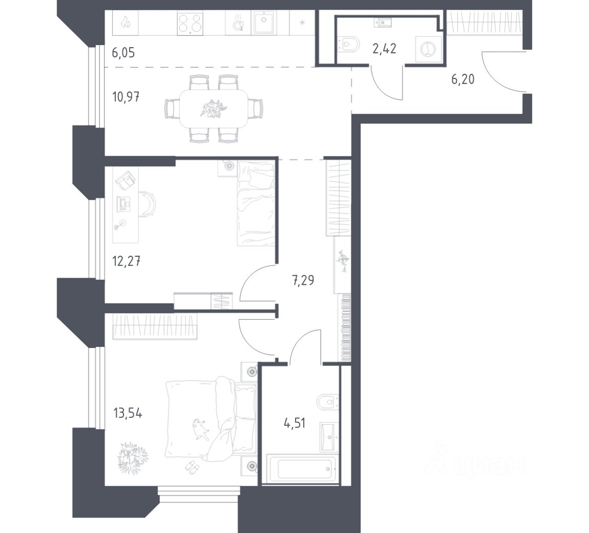 Строим кварталы для жизни с заботой о будущем. Предлагаются 2-комнатные апартаменты бизнес-класса площадью 63,25 кв.м в корпусе 21 на 16-м этаже, в жилом комплексе ''Sky Sputnik''.