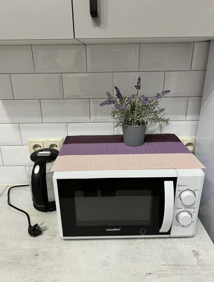Есть электрический чайник, утюг, сушилка, пылесос, микроволновка. Духовки - нет.