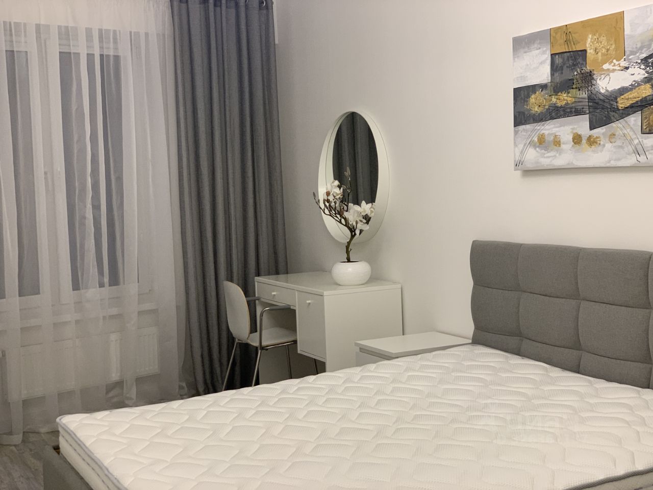 В квартире выполнен качественный ремонт. На кухне встроена бытовая техника (варочная поверхность, духовой шкаф, вытяжка, посудомоечная машина). Также в квартире установлен кондиционер. Для вашего удобства оборудована постирочная комната, где установлена стиральная машина и сушильная.