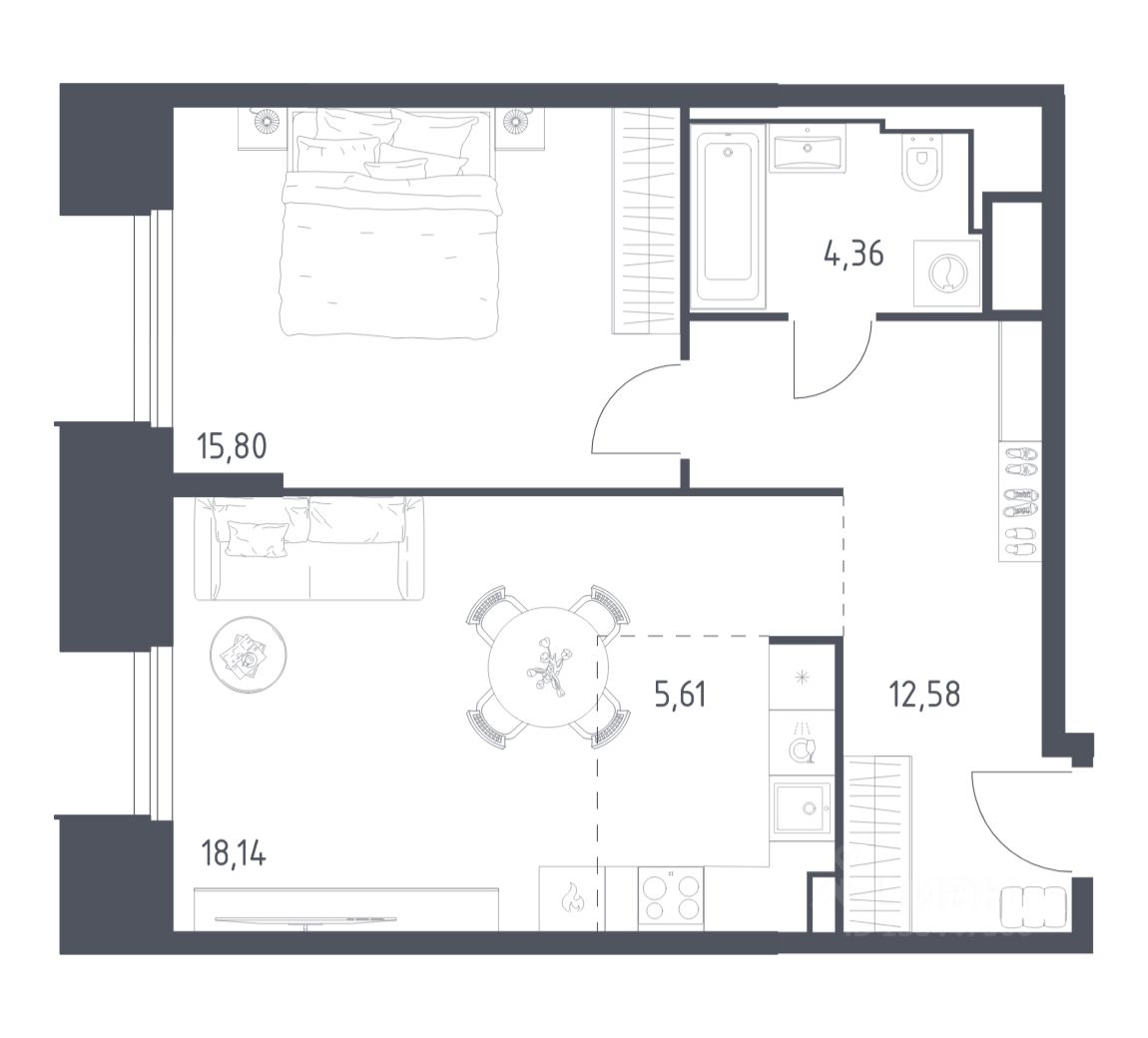 Строим кварталы для жизни с заботой о будущем. Предлагаются 1-комнатные апартаменты бизнес-класса площадью 56,49 кв.м в корпусе 19 на 23-м этаже, в жилом комплексе ''Sky Sputnik''.