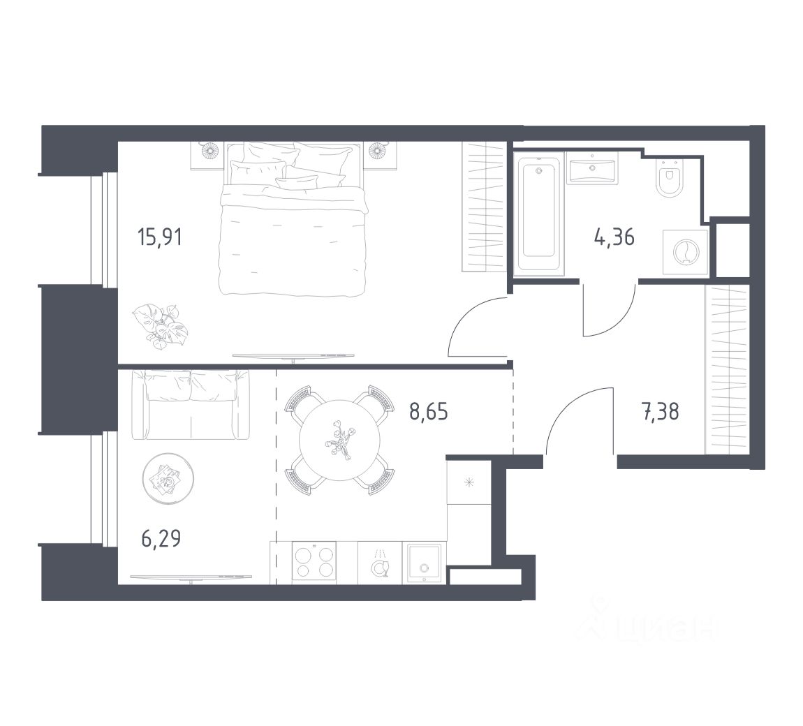 Строим кварталы для жизни с заботой о будущем. Предлагаются 1-комнатная квартира бизнес-класса площадью 42,59 кв.м в корпусе 19 на 9-м этаже, в жилом комплексе ''Скай Спутник''.