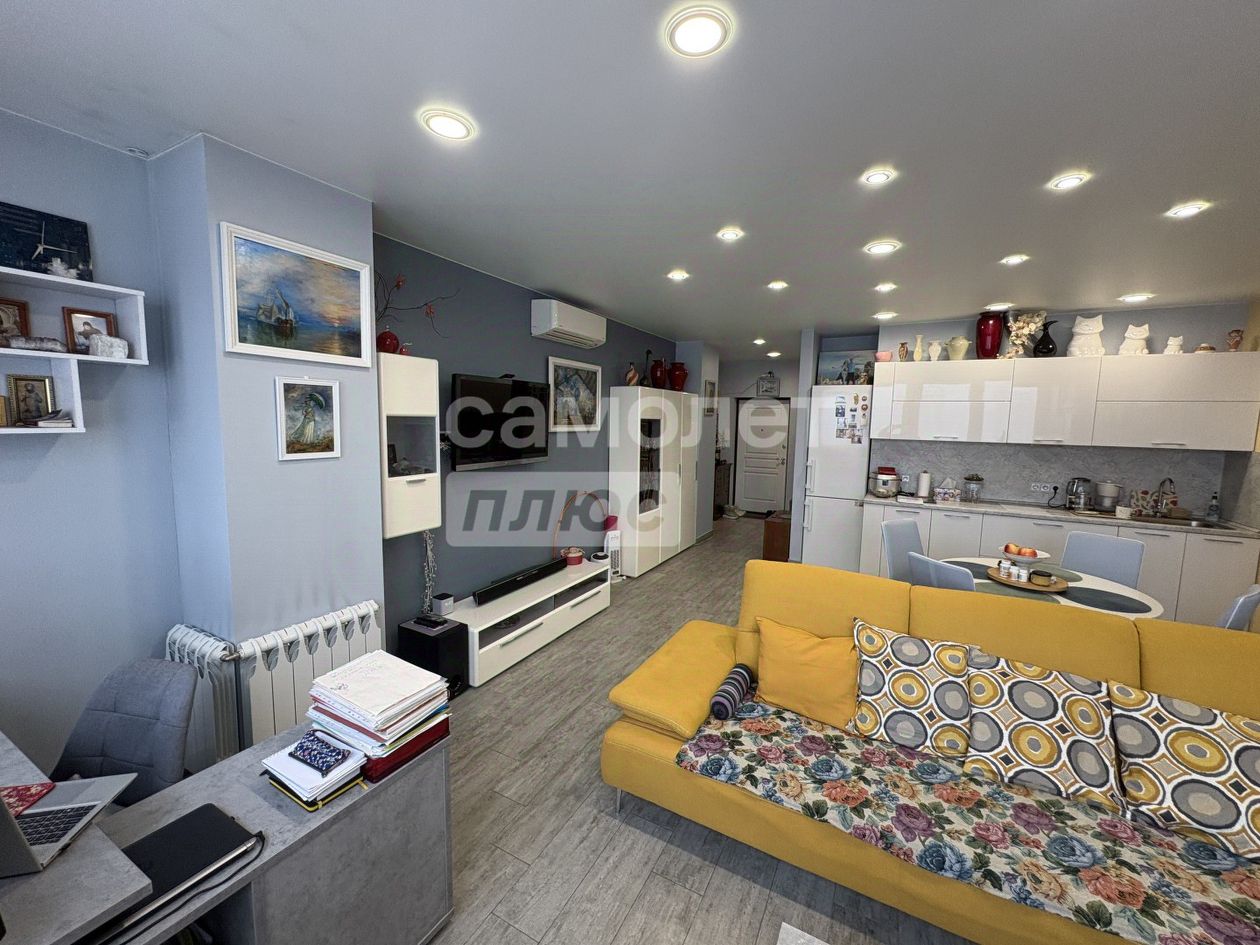 Планировка и пространство: Общая площадь 55 м² использована максимально эффективно. Просторная кухня-гостиная и уютная спальня. Благодаря высокому этажу и большим окнам квартира залита светом.
