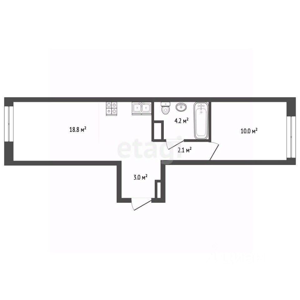 Квартира с распашной планировкой, где окна выходят на две стороны, предлагается с черновой отделкой, что позволяет новому собственнику реализовать индивидуальный дизайн-проект без необходимости переделки готового ремонта.