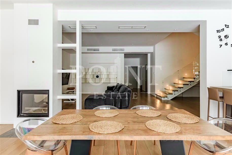 Лот: 115796. Современный двухэтажный таунхаус, площадью 310 кв.м располагается на участке 2 сотки в охраняемом коттеджном поселке ''Резиденция Рублево''. Мебель и техника от ведущих мировых производителей в наличии. Функциональная планировка. На первом этаже находится гостиная, кухня, спальня, санузел, терраса, холл. Второй этаж занимают три спальни, два санузла, гардеробная. Предусмотрен навес на два машино-место. Отличная транспортная доступность и богатая инфраструктура.