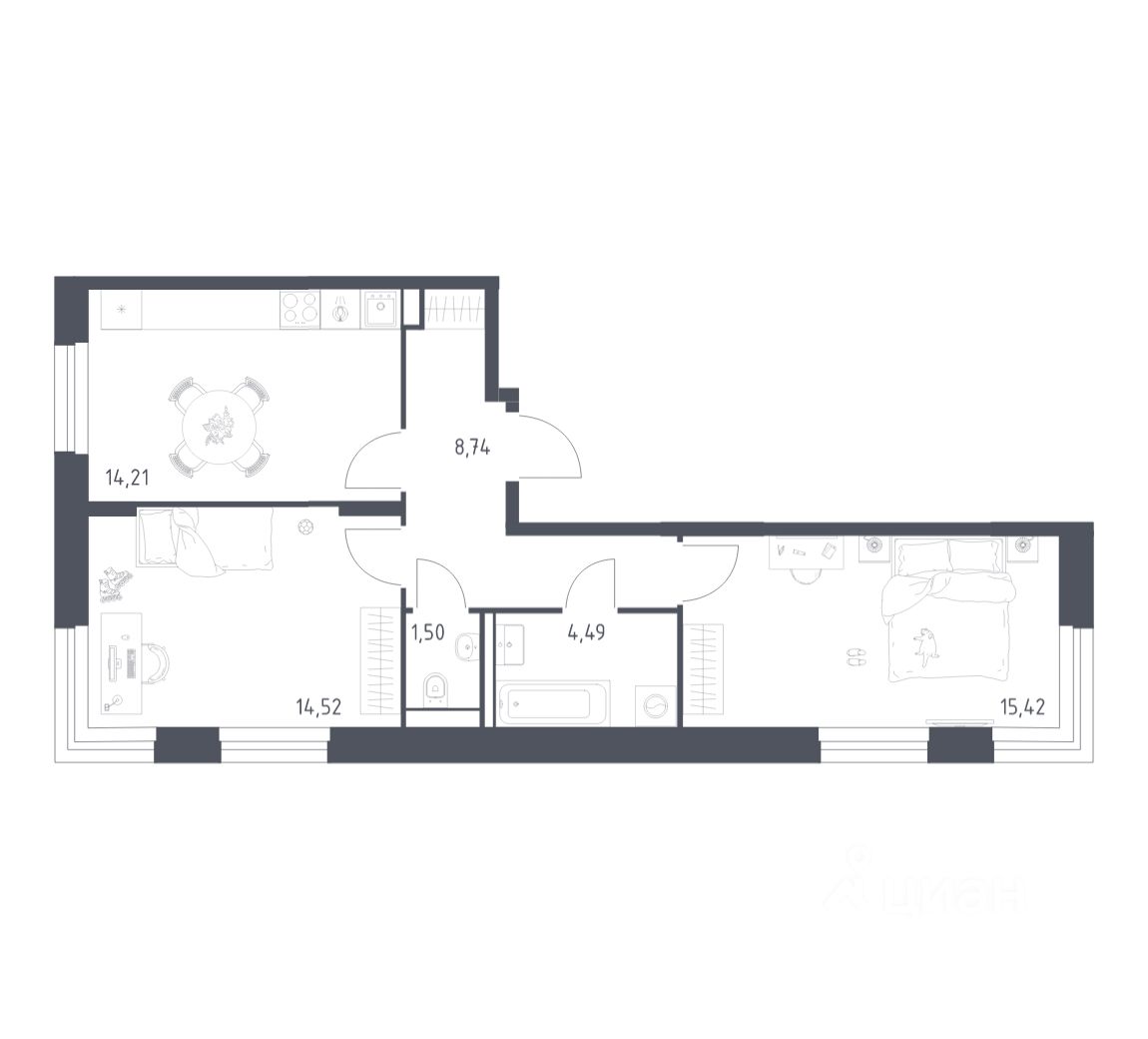Строим кварталы для жизни с заботой о будущем. Предлагается 2-комнатная квартира комфорт-класса площадью 58,78 кв.м в корпусе 2 на 13-м этаже, в жилом комплексе ''Квартал Строгино''.