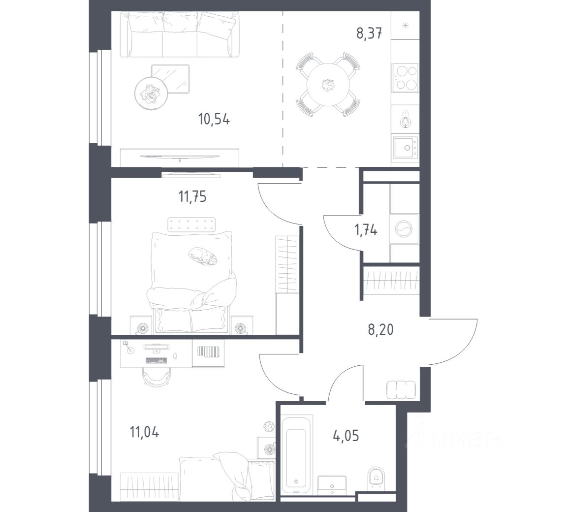 Строим кварталы для жизни с заботой о будущем. Предлагается 2-комнатная квартира комфорт-класса площадью 55,69 кв.м в корпусе 2 на 23-м этаже, в жилом комплексе ''Квартал Строгино''.