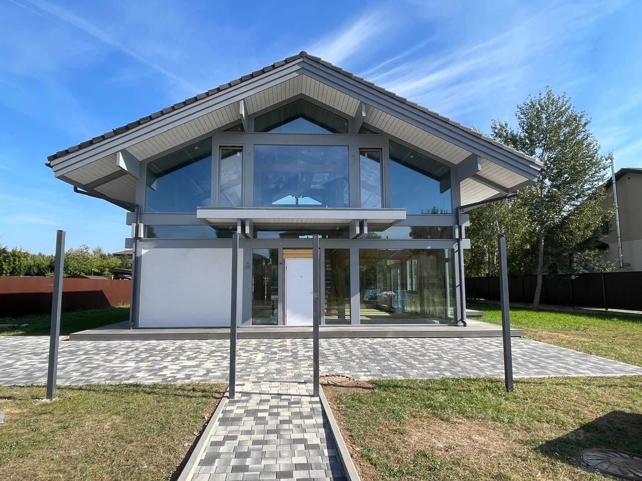 ТЕХНОЛОГИИ И МАТЕРИАЛЫ: Фундамент: Монолитная ж/б плита 300 мм). Силовой каркас: Конструкционный Клееный брус высшего качества . Кровля: Натуральная цементно-песчаная черепица Braas. Утепление кровли — 250 мм. Остекление: Энергосберегающие безрамные стеклопакеты и профиль Schco (Германия). или аналог Мультифункциональное стекло (сохраняет тепло зимой и прохладу летом.