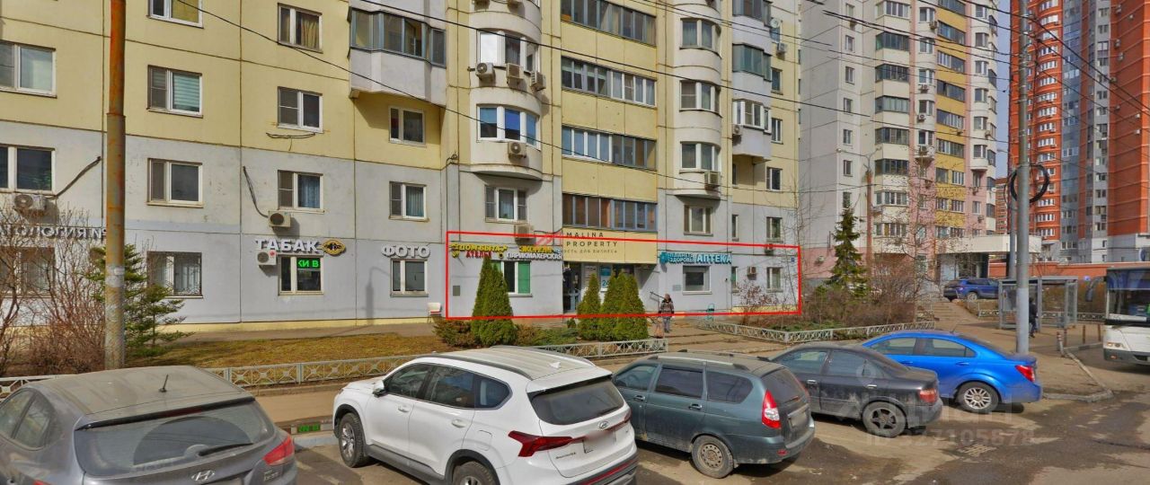 Помещение располагается в центре жилого массива. Интенсивный автомобильный и пешеходный трафик вдоль помещения. Напротив автобусная остановка. В пешей доступности от ж/д станция Пенягно (D2) и метро ''Мякинино''.