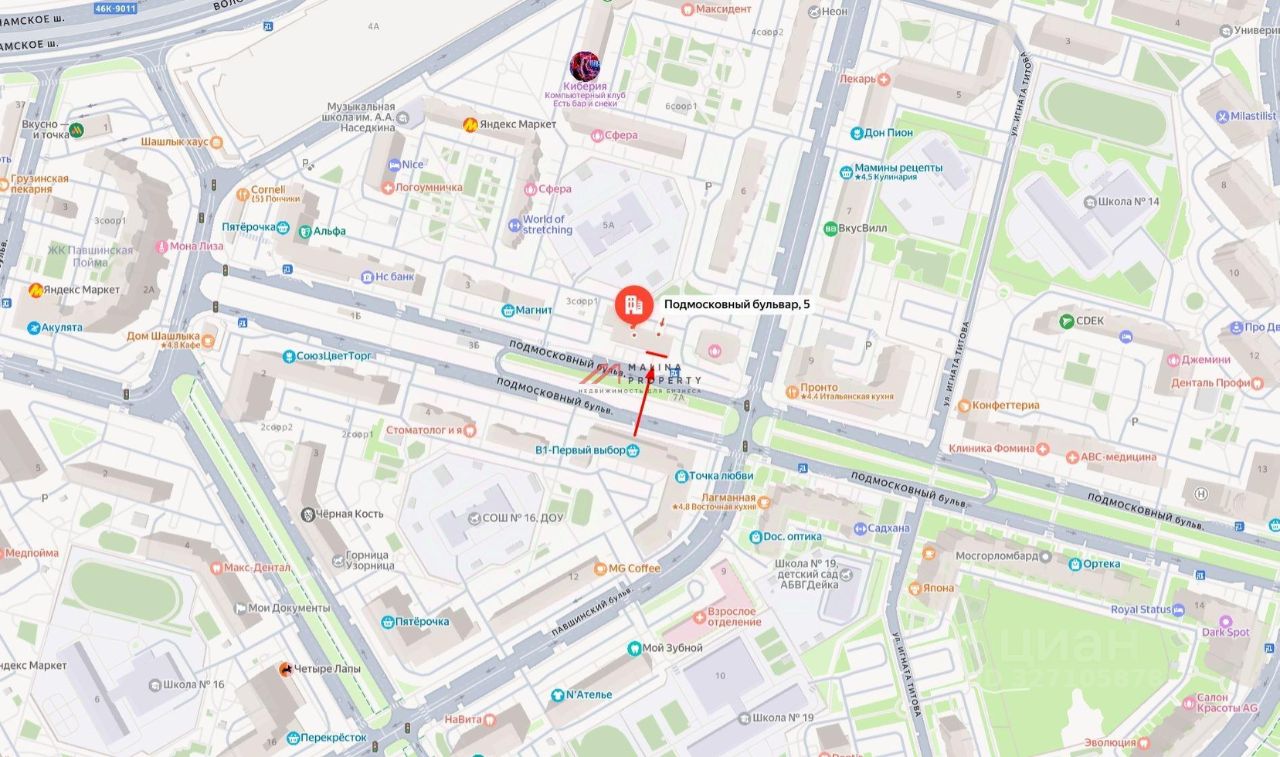 Продажа торгового помещения 302,7 м2 с арендаторами'' в г. Красногорск, на Подмосковном бульваре, д. 5 (30 минут транспортом от м. Митино). 1 линия домов.