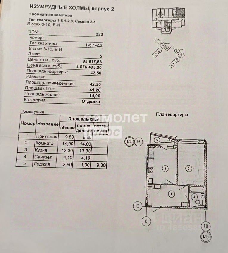 Локация: экология и тишина + вся инфраструктура рядом ''Изумрудные холмы'' — обжитой микрорайон с полноценной средой для жизни: школы и детские сады и сформированная инфраструктура. Главный бонус для здоровья и отдыха — Опалиховский лесопарк рядом: благоустроенные прогулочные дорожки, освещение, спортивные и детские зоны, площадка для выгула животных — можно гулять и заниматься спортом буквально ''у дома''.