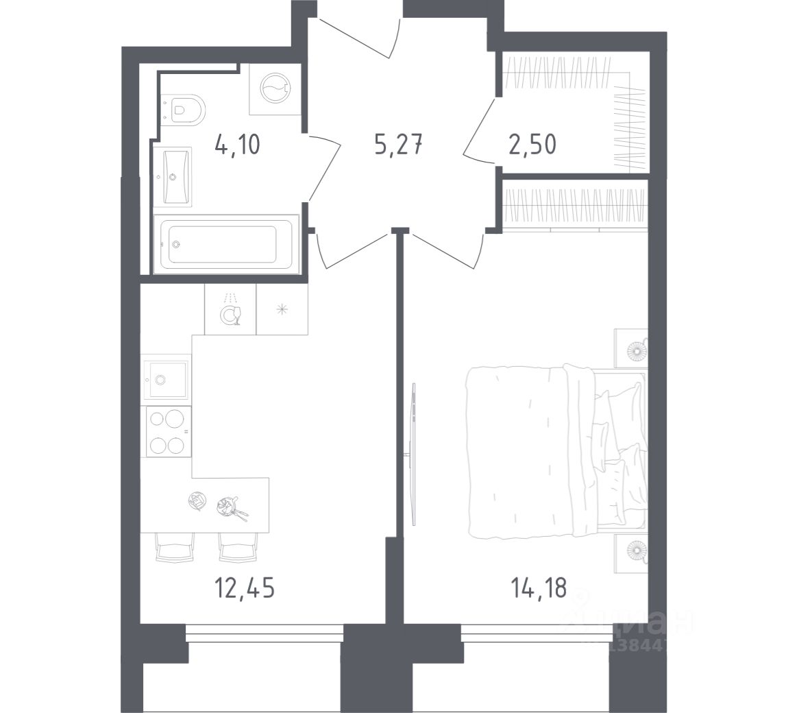 Строим кварталы для жизни с заботой о будущем. Предлагаются 1-комнатные апартаменты бизнес-класса площадью 38,5 кв.м в корпусе 20 на 26-м этаже, в жилом комплексе ''Скай Спутник''.